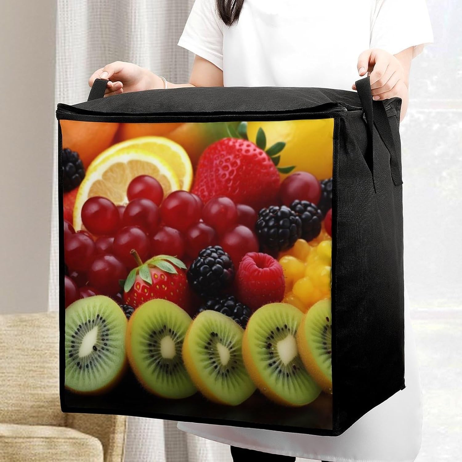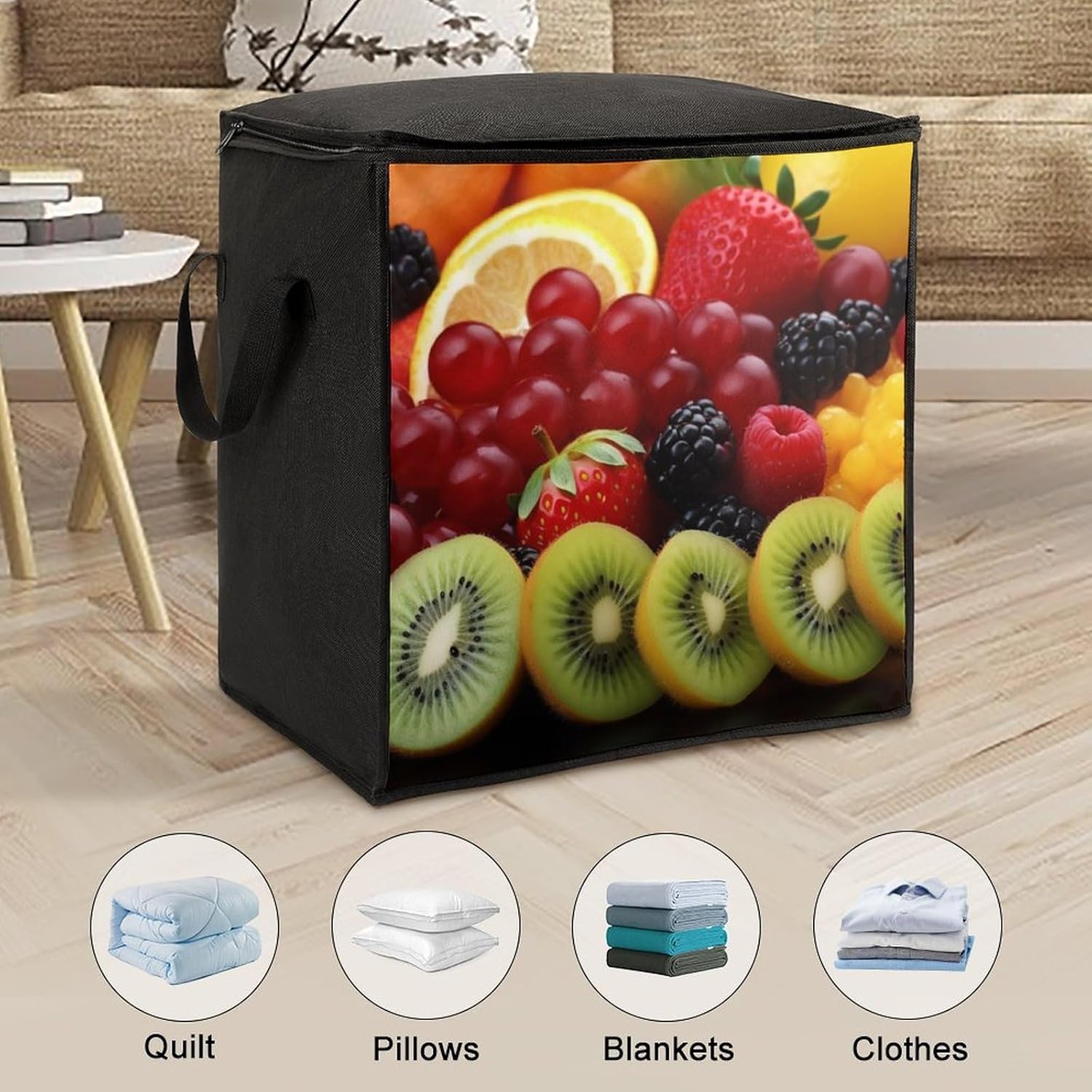 Quilt Storage Bag,Fresh Fruit Printed Large Foldable Storage Container Portable Travel Storage Bag for Blankets, Quilts, Clothes, Comforter, Bedding And Pillows