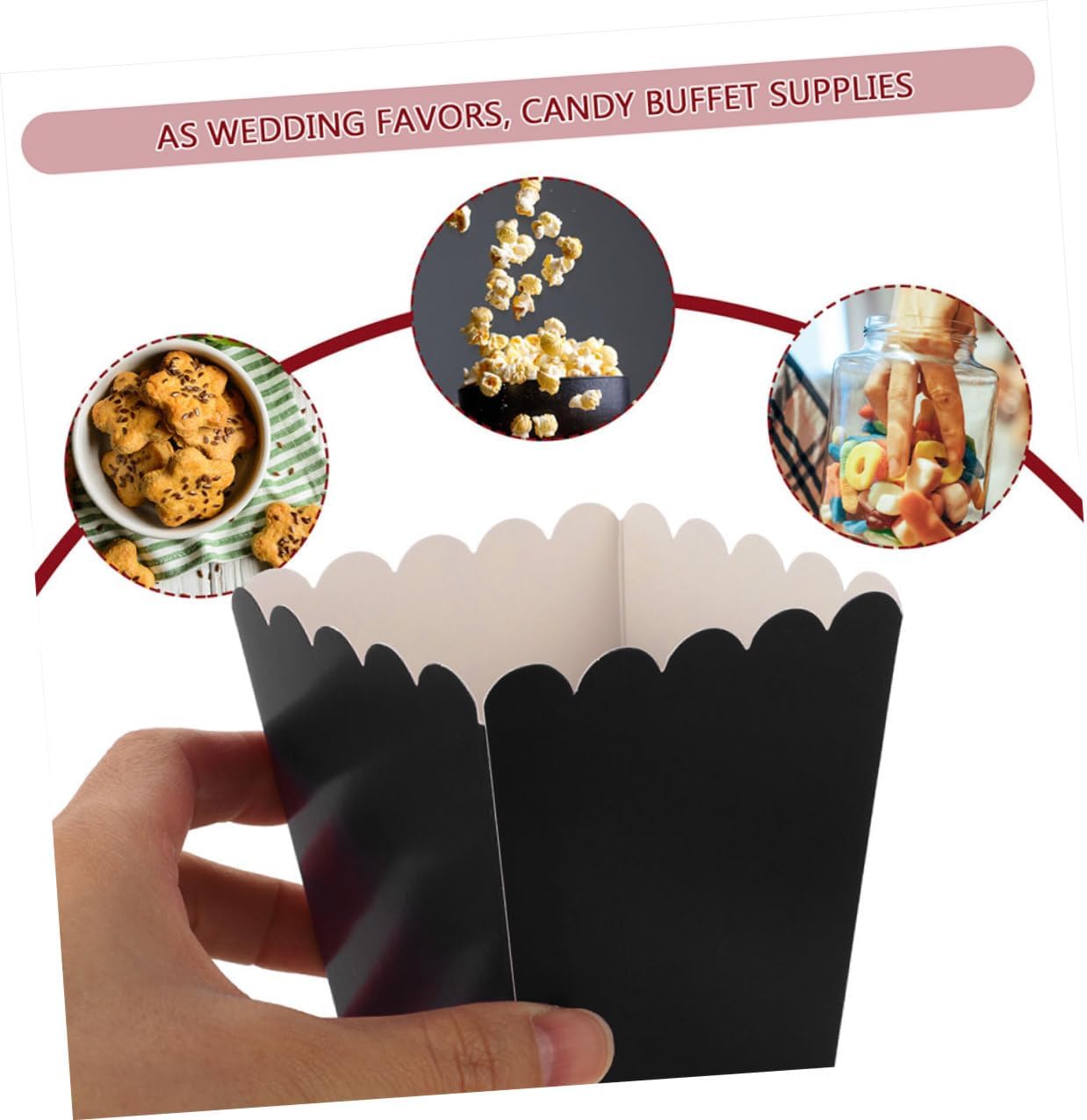Package Include Popcorn Boxes Characteristics -Material:white cardboard -Color:Black -Size:10.70X7.50X5.50cm/4.21X2.95X2.16in -Product Info:Popcorn box - Fill popcorn box with fried food, popcorn or any special goodies you would like to present to the guests popcorn storage boxes. - Lightweight, these paper Popcorn Boxes are portable to hold and carry, not waste too much effort, not easy to tear popcorn carton. - Made with safe white cardboard, will and reliable, great for all your special occasions and events movie night party popcorn boxes. - Especially suitable for movie theater, birthdays, parties, performance decorations, provide huge storage convenience small popcorn boxes. - Impress your guests with these popcorn boxes, perfect for storing popcorn, and you will love these boxes when seeing film themed party popcorn boxes.Goods Informationpopcorn buckets The popcorn box can hold many snacks time, suitable for holding popcorn, candy and other food or snacks for celebrations and parties.movie night party popcorn boxes The paper Food Box also can be regarded as candy box, treat box or party favor box