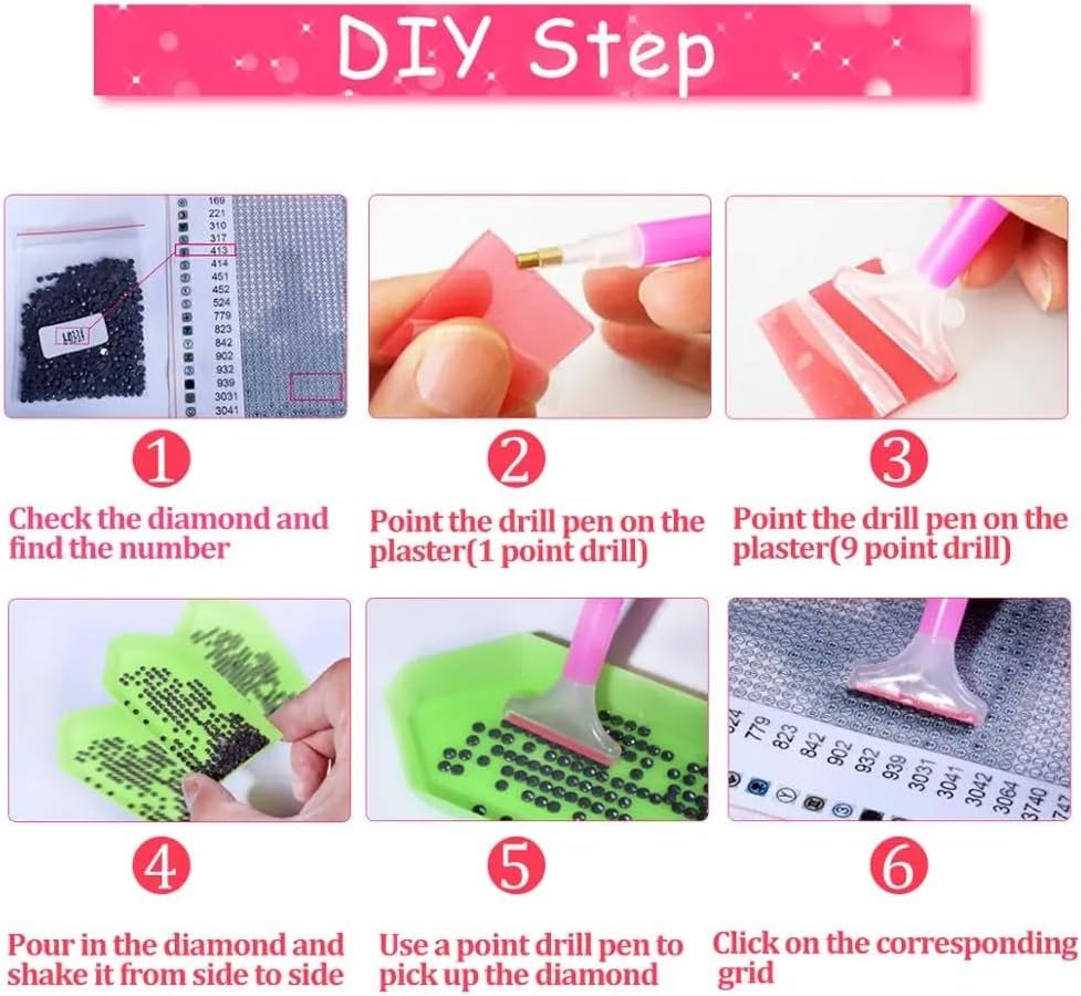 | Included Components | oil painting canvas, acrylic beads, stone tray, pen tools, glue, Superior-Quality Adhesive Canvas, Separated Bags of Numbered Diamonds, One Diamond-direction turned Container, Stylus to Apply Diamonds, Glue Plate for Grabbing Diamonds with Stylus |