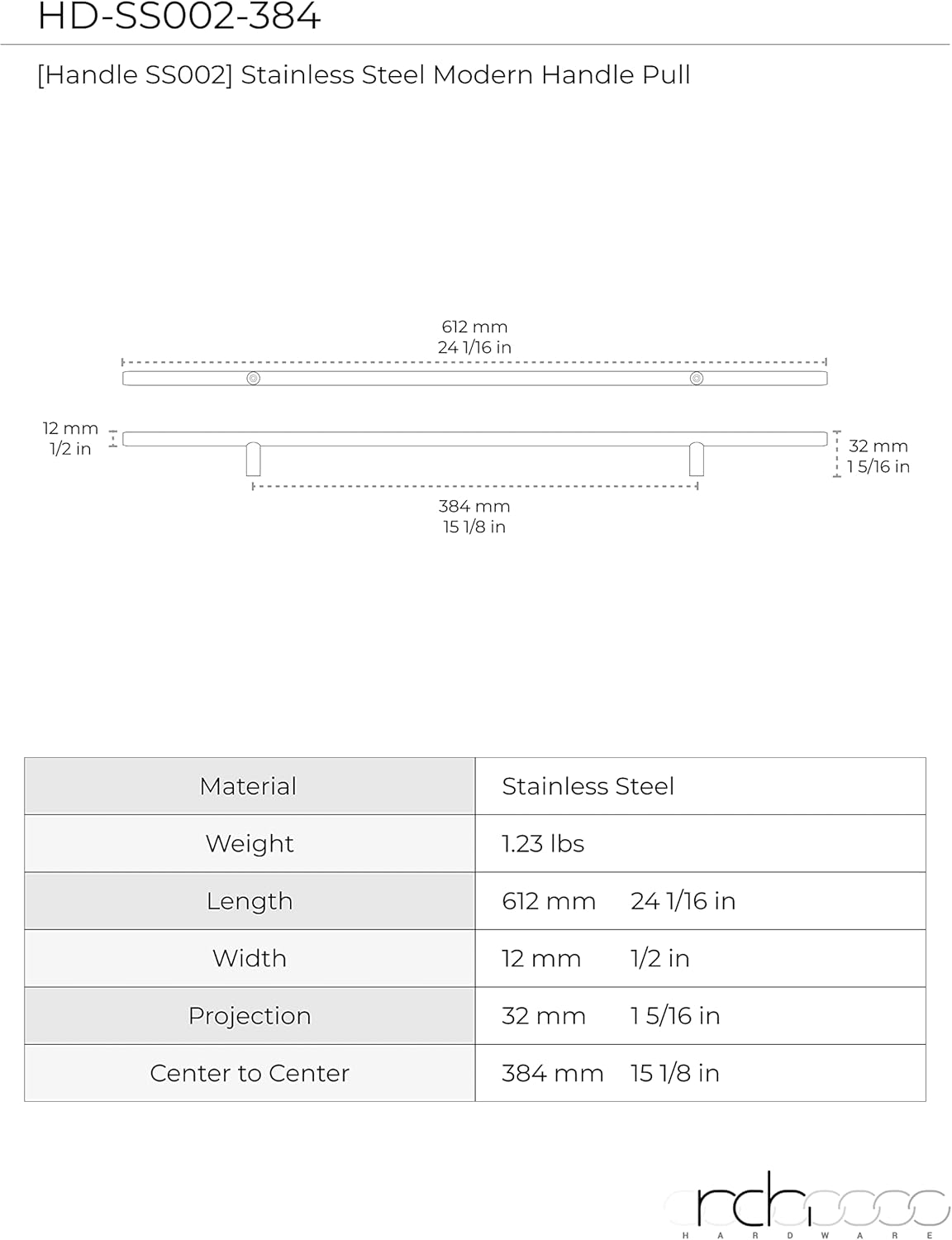 The RCH Hardware cabinet drawer pull brings clean, modern style to cabinetry and furniture. This cylindrical T-bar handle features a minimalist silhouette influenced by Mid-Century Modern and Industrial design and is a strong fit for contemporary and transitional spaces. It's crafted from solid stainless steel for strength, durability, and corrosion resistance. Each pull includes matching screws for straightforward installation. Suitable for indoor or outdoor use, and available in Brushed Stainless, Brushed Gold, and Black finishes to complement a wide range of interiors.