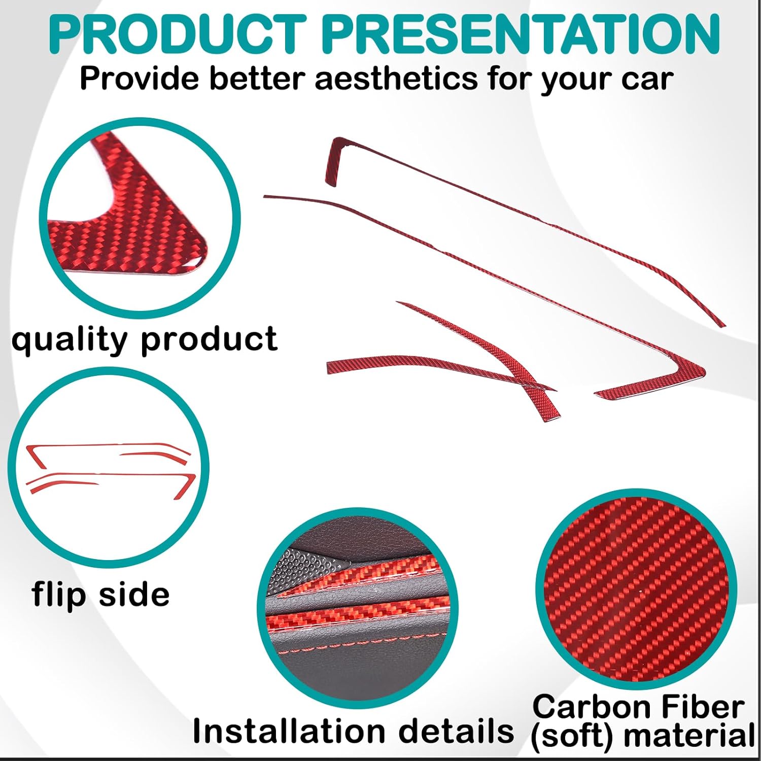 Installation instructions (It is suitable for products with double-sided adhesive on the back): 🚗Clean the surface where you want to stick. Keep dry and clean. 🚗Determine the installation location and then make comparison of the product and installation location. If the product doesn’t fit your vehicle, please contact us immediately and DO NOT INSTALL. 🚗When tearing off the double-sided adhesive of cover trim, you can’t touch the double sided paste with your hand. 🚗In order to achieve better effectwe suggest heating double sided adhesive with hair dryer or lighter . 🚗Align position and then paste. The paste effect depends on paste conditions and correct installation. 🚗 Please do press hard especially on the edges at least 2 mins after installing. 🚗Please don't touch water and Keep dry after been install at least 72 hours. Or it will easy to fall off.