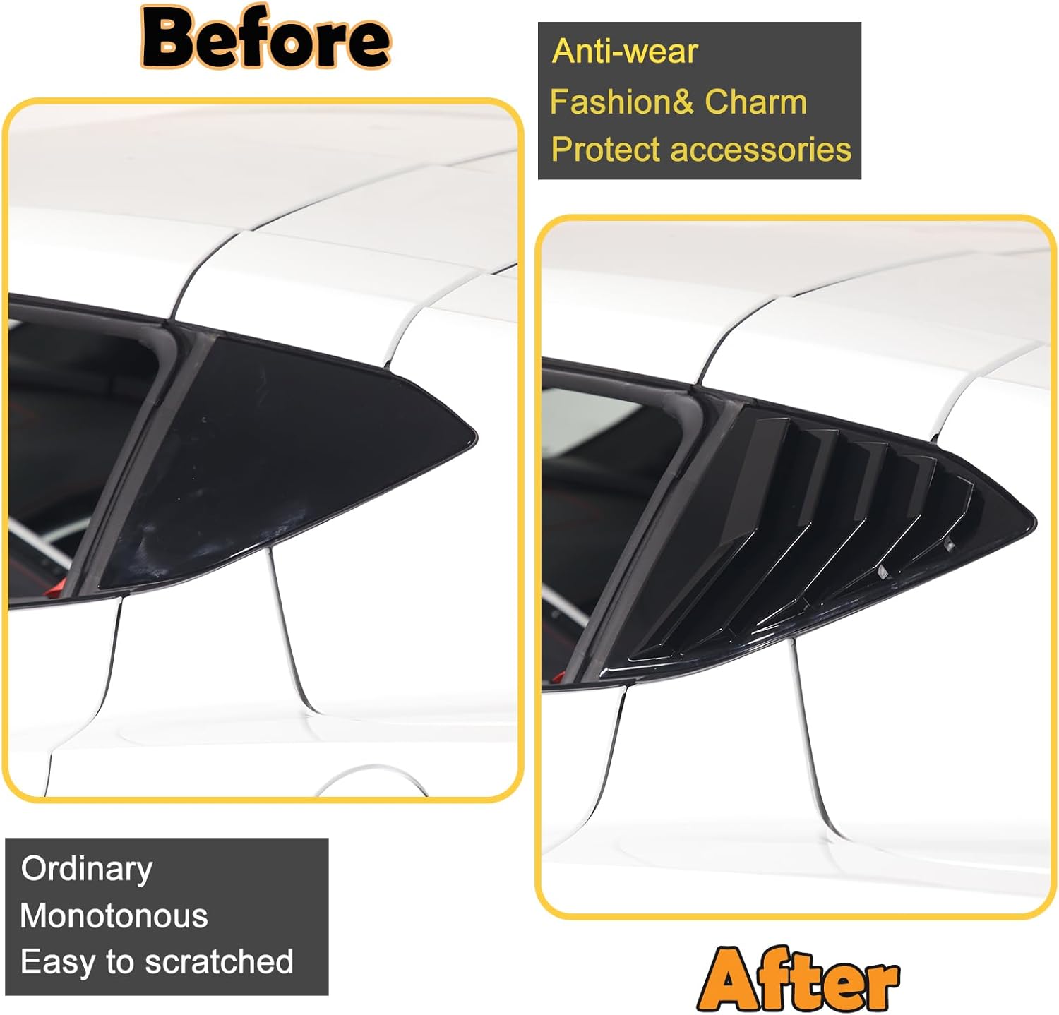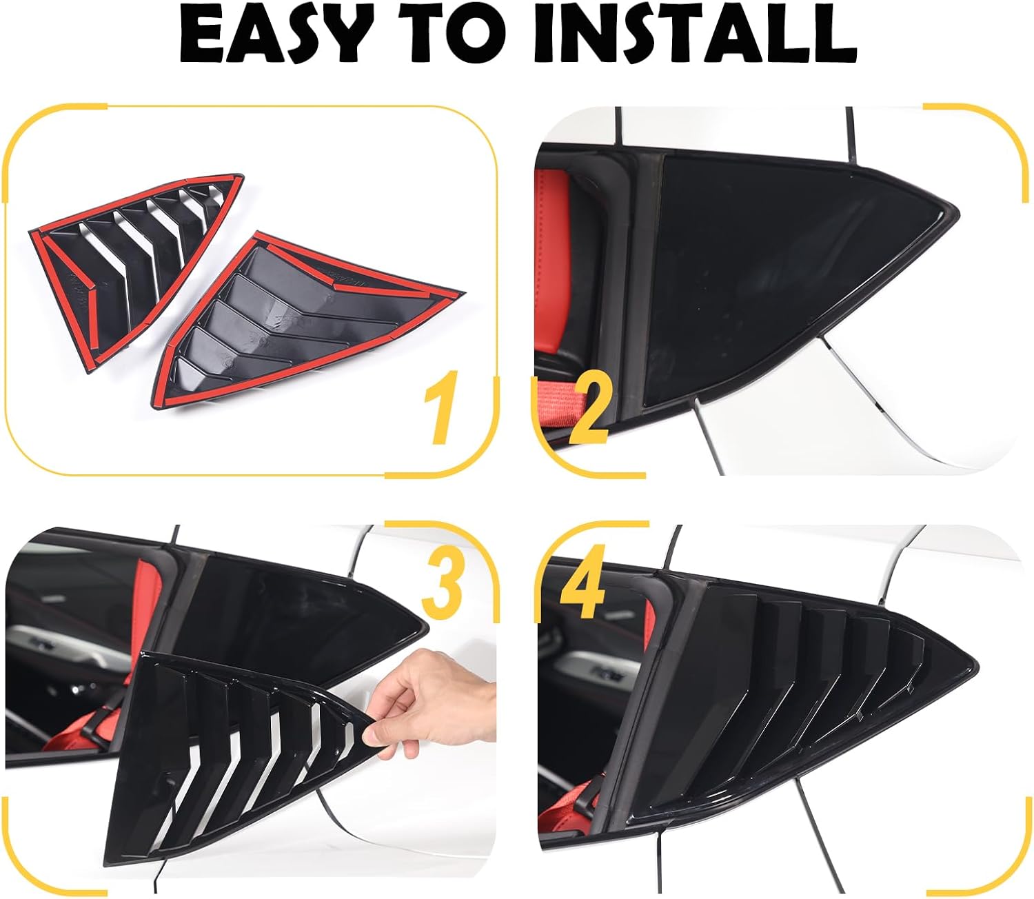 Decorate Your Rear Side Window Panel and Protection it From Scratch Condition: 100% Brand New Window Left/Right Racing Style Rear Side Window Vent Sticker Product features: Light weight, Durable, Scratch-resistant, Easy to install Fitment: - Rear Window Shutters Triangle Trim Cover Stickers fit for Corvette C8 Stingray 2020 2021 2022 2023 Material: Rear Quarter Window Cover Trim Made of ABS material Item specifications: 100% brand new and high quality guaranteed Easy to use and to operate at affordable prices. Package Include: 2PCS X Rear Window Louver Cover Bring the most beautiful colors to your interior And can bring the protection of car interior No need to punch holes, no screws, direct installation 1.The back of rear view mirror cap cover come with 3M tape. 2.Wipe clean the rear view around in advance, and keep dry and clean. 3.Tear off the tape and press it tightly, and the installation can be completed quickly and easily. 4.If the weather is cold. Please use the hair dryer(hot air blowing)in order to provide the best viscous. 5.Please keep dry after been install at least 72 hours. Or it will easy to fall off. 6. Any quetion about installation, please feel free contact us. NOTES: Please check whether this item can fit on your car before purchasing