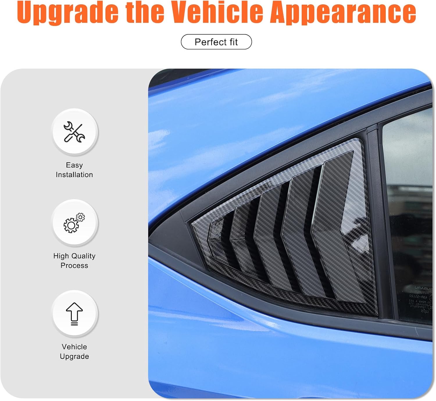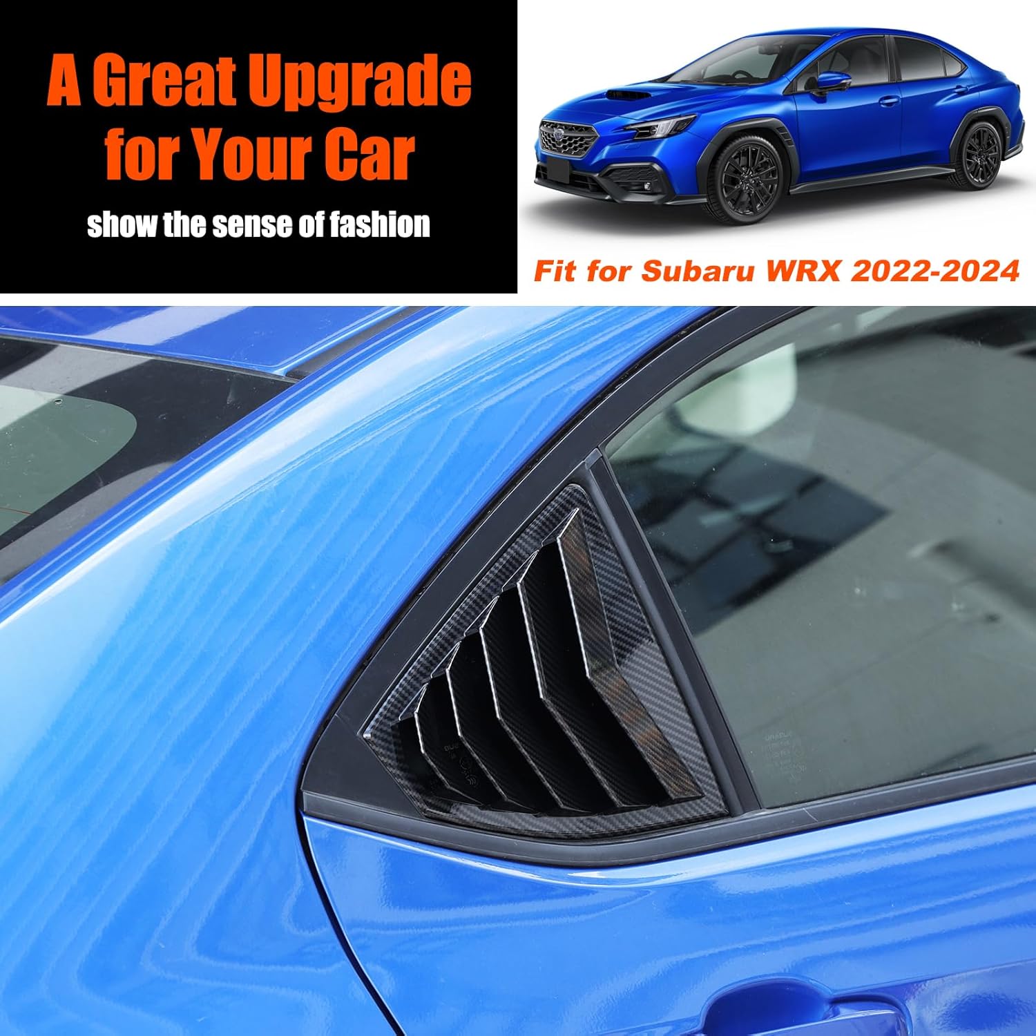 Description Applicable Models: Suitable for Subaru WRX 2022 2023 2024 (Sedan Version) Rear Window Louver Cover. Please make sure your car model matches this rear window louver cover before ordering. Packing List: 2PCS Rear Window Louver Cover Material: ABS Color: Piano Black/Carbon Brazing Features: Made of high quality ABS for durability. The rear window louver cover not only decorates your car, but also protects the rear side windows from scratches. Simple design, provide a fashionable decorative style for your car.