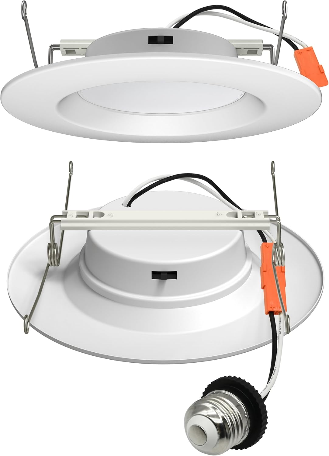 Transform your space with the NICOR Lighting recessed lighting housing & trim kits, designed to deliver exceptional performance, versatility, and style. This low-profile downlight is built to fit standard 5-inch and pancake lights 6 inch led housings, making it the perfect upgrade for any room. With its damp location rating, it’s equally suited for living rooms, bedrooms, kitchens, bathrooms, and hallways, bringing sleek, modern lighting to every corner of your home. Featuring selectable color temperatures from 2700K to 5000K, this high hat lights allows you to adjust the ambiance to match your needs, whether you prefer cozy warm tones or crisp daylight whites. The advanced dimming capability, down to 5%, gives you precise control over brightness, letting you set the perfect mood for any occasion. The precision-engineered polycarbonate diffuser ensures smooth, uniform light distribution with minimal glare, creating a comfortable and inviting environment. Built for durability, the IXD recessed lighting dimmable led recessed lighting 6 inch features robust steel housing and reinforced torsion V-spring clips, ensuring a secure and long-lasting installation. Its advanced Driver on Board (DOB) technology enhances reliability and efficiency, providing consistent performance over time. Designed for easy installation, it includes an Edison base adapter and quick-connect plug, making it a hassle-free choice for both retrofits and new constructions. Available in black or white, the NICOR Lighting IXD Recessed LED ceiling light fixtures blends effortlessly into any décor, offering a stylish, functional lighting solution for your home. Whether you’re upgrading your existing lighting or designing a new space, this downlight combines innovation, durability, and aesthetic appeal to brighten every room with ease.