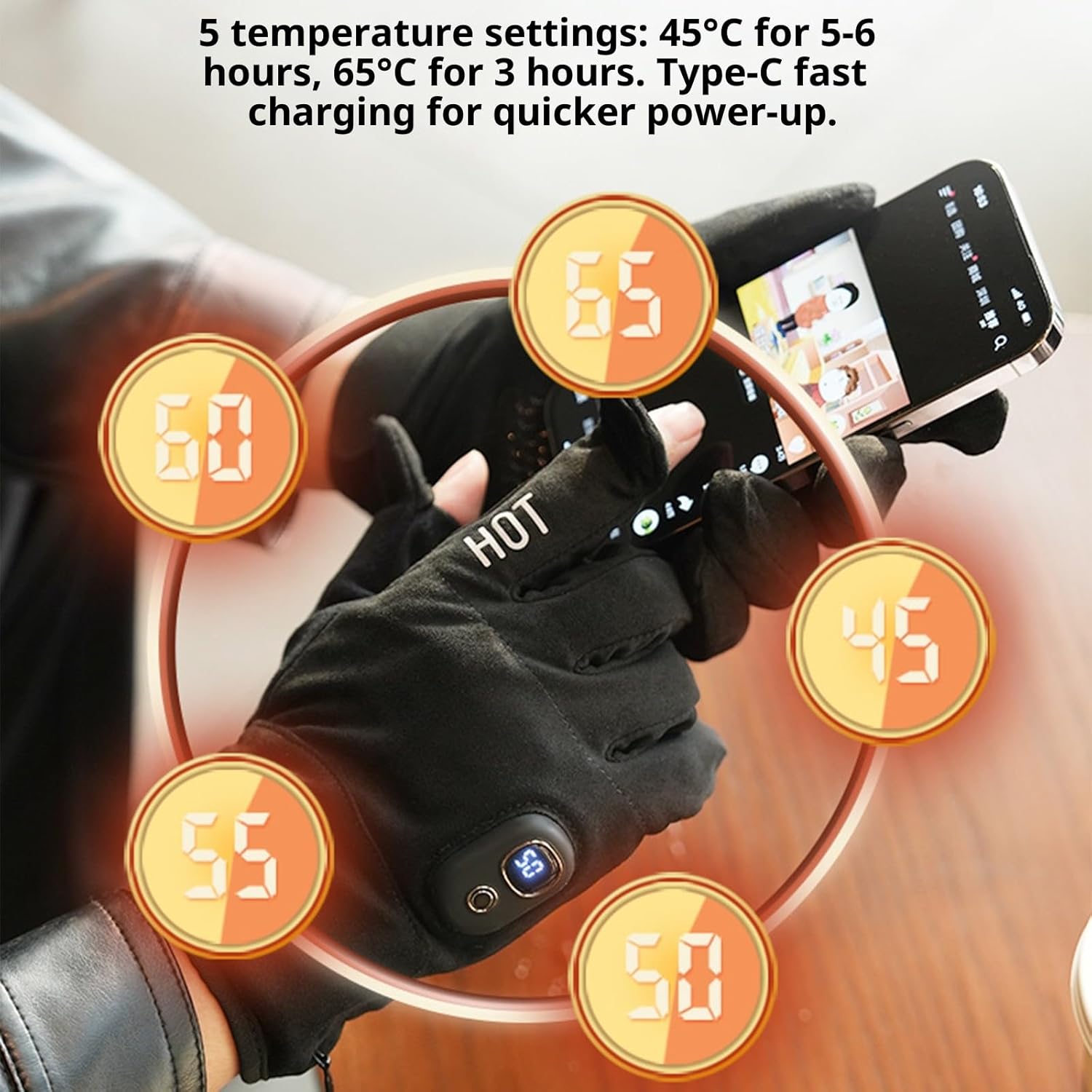 Rechargeable Heated Gloves for Men Women, 5 Heat Levels 3000mAh Battery, Windproof Thermal Gloves for Skiing Cycling Features: all day warmth with these heated gloves featuring targeted finger heating technology, touchscreens compatible fingertips, and a fast charging 3000mAh battery that delivers up to 5 hours of continuous heat across five adjustable temperature settings Crafted from premium suedes like fleece with windproof / water exterior, these winter gloves combine thermal insulation with flexible mobility, while the LED power display ensures precise heat management during outdoor adventures Ideal for outdoor enthusiasts, winter sports athletes, and cold sensitive individuals seeking reliability hand protecting during skiing, motorcycle rides, or commutes Perfect for operating smartphones while ice fishing, building snow sculptures with, or gripping bicycles handles during snows trail explorations Engineered with breathable inner lining and ergonomic stitching, making essential winter accessories for arthriti sufferers and extreme weather workers Specifications: Color: Two Choices Dimension: 22.5×10cm / 8.85×3.93in Component: Imitation suedes Package Includes: 1pair warm heating charging gloves Note: 1.Please allow 1-2cm errors due to manual measurement, making sure that you will not mind before order 2.Due to the differences between different monitors, the picture may not reflect the actual color