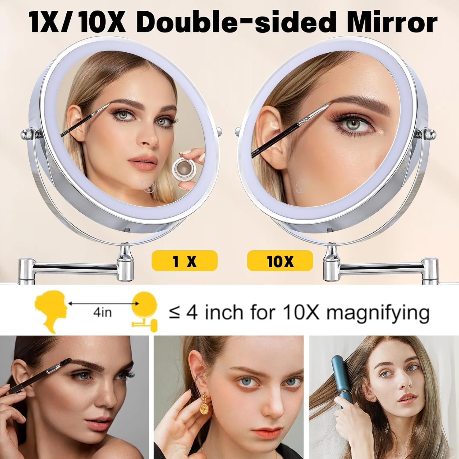 Transform your daily beauty routine with this sleek and versatile wall-mounted makeup mirror. Its adjustable arm and 360-degree swivel design allow you to find the perfect angle for flawless makeup application or grooming. The large, well-lit mirror provides exceptional clarity, ensuring you don't miss a single detail. Mounted securely to the wall, this mirror is a space-saving solution for any bathroom or dressing area. With its modern chrome finish, it adds a touch of elegance to your space. Simplify your morning routine and elevate your self-care experience with this functional and stylish wall mirror.