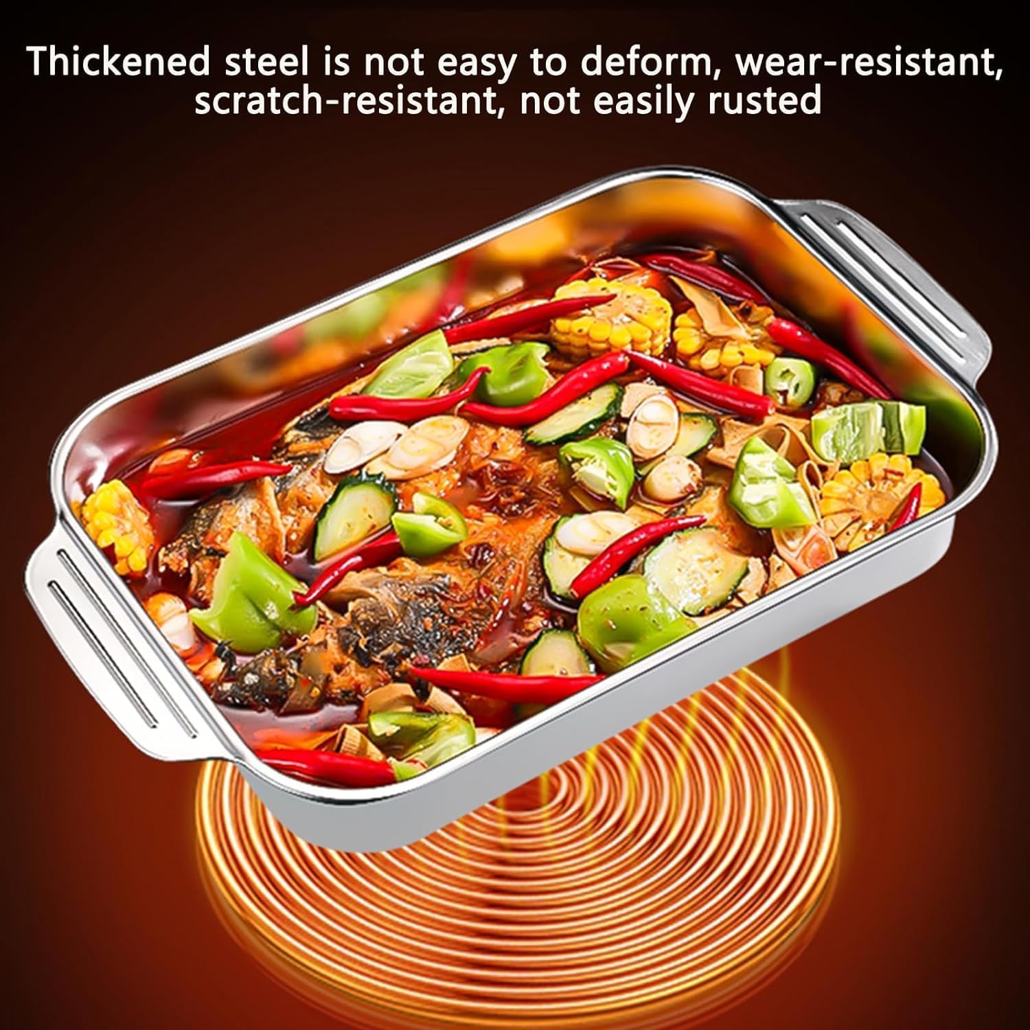Rectangular Stainless Steel Deep Baking Tray: Ideal for Roasting, Baking, and More! Perfect for Fish, Lasagna, and Chicken 3.1L, 3.4L, 5.8L, 7.4L, and 10L.