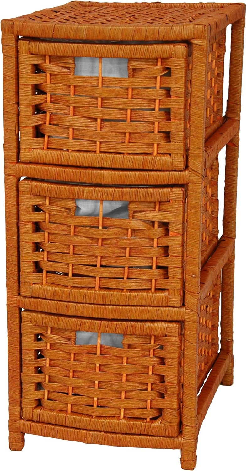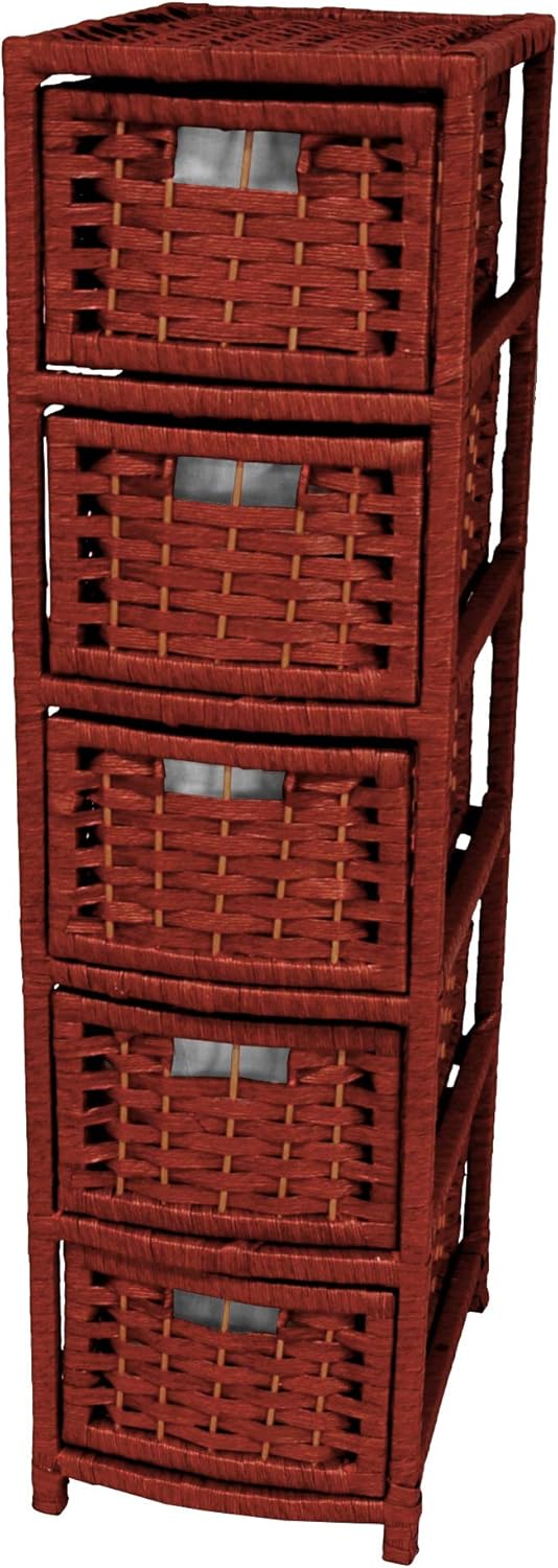 Crafted from light weight wood frames, woven with high quality spun plant fiber cord. A unique shape, great wherever the organization of drawers is necessary, but a large, wider size chest is impractical.
