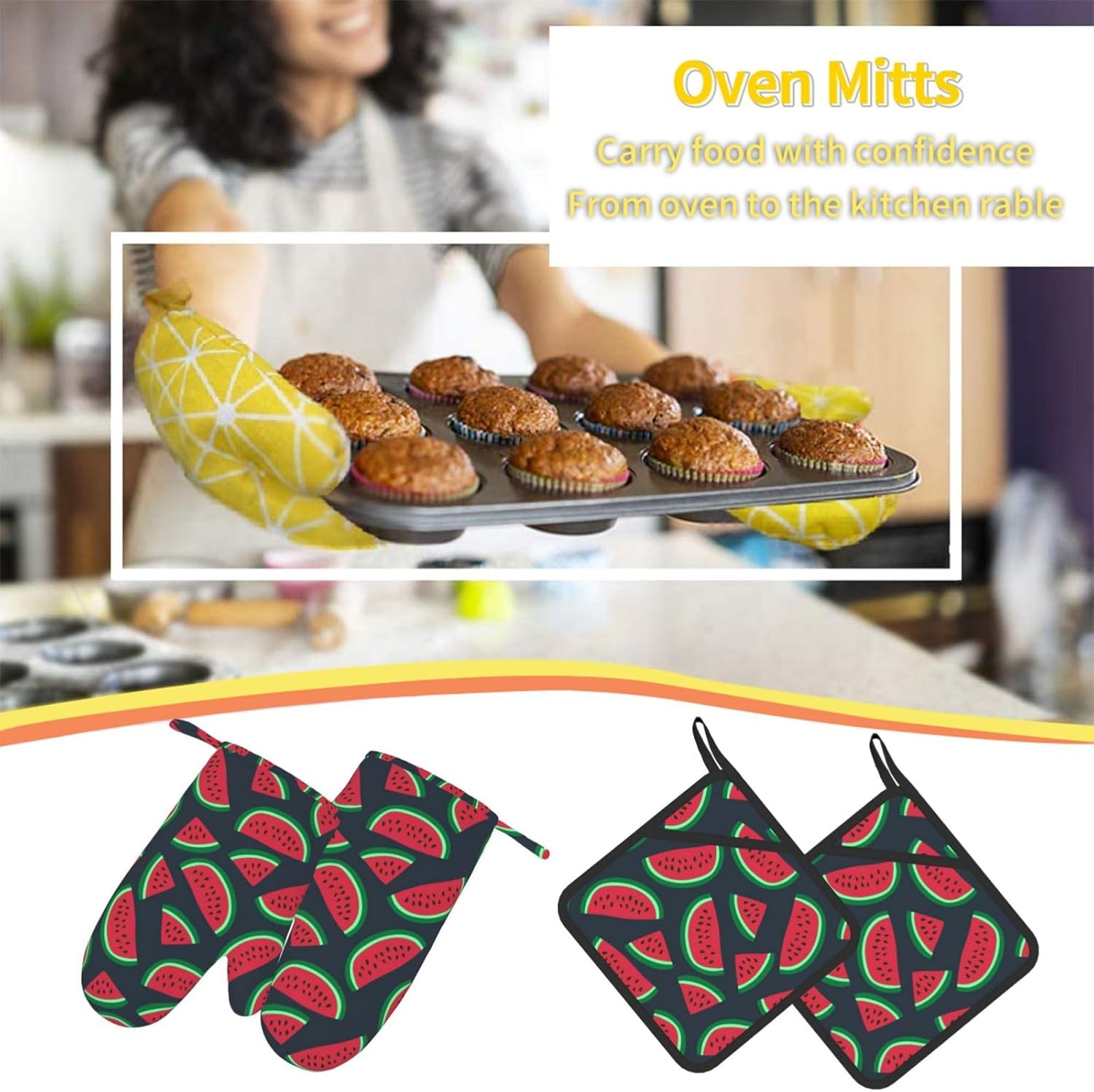 Upgrade your kitchen essentials with this oven mitts and pot holders set, designed for safe and comfortable handling of hot cookware. The set includes 2 heat-resistant oven mitts and 2 pot holders with pockets, making it a practical choice for daily cooking, baking, grilling, and microwave use.Crafted from high-quality polyester with thick insulated padding, these kitchen gloves deliver reliable heat protection up to 260°C. The soft quilted lining ensures comfort and flexibility, while the silicone palm design enhances grip and control when handling hot pots, pans, and trays.The non-slip silicone surface provides added stability, giving you confidence when moving hot cookware. Waterproof inner and outer layers make cleaning simple—just wipe clean or hand wash and air dry for easy care.Each piece features a convenient hanging loop for organized storage and quick access in your kitchen. Stylish and functional, this oven mitts set also makes a thoughtful gift for family and friends on holidays, housewarmings, and special occasions.