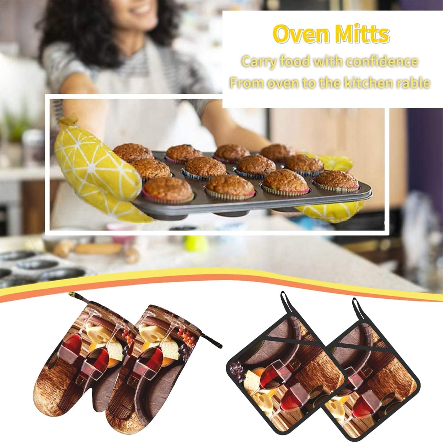 • Complete 4-Piece Kitchen Set – Includes 2 oven mitts and 2 pot holders (with pocket), offering a practical solution for cooking, baking, microwave use, and outdoor grilling.