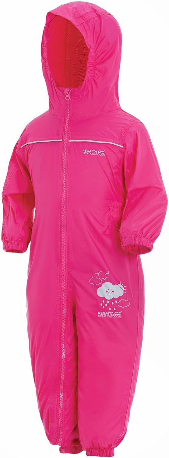 Waterproof splash suit for little adventurers. whether they're chasing the dog with the hosepipe, having fun in the park or it's a wet weather day at nursery, with our classic puddle suit you have peace of mind they're protected from the rain. Finished with elastic around the little cuffs to keep the weather out.