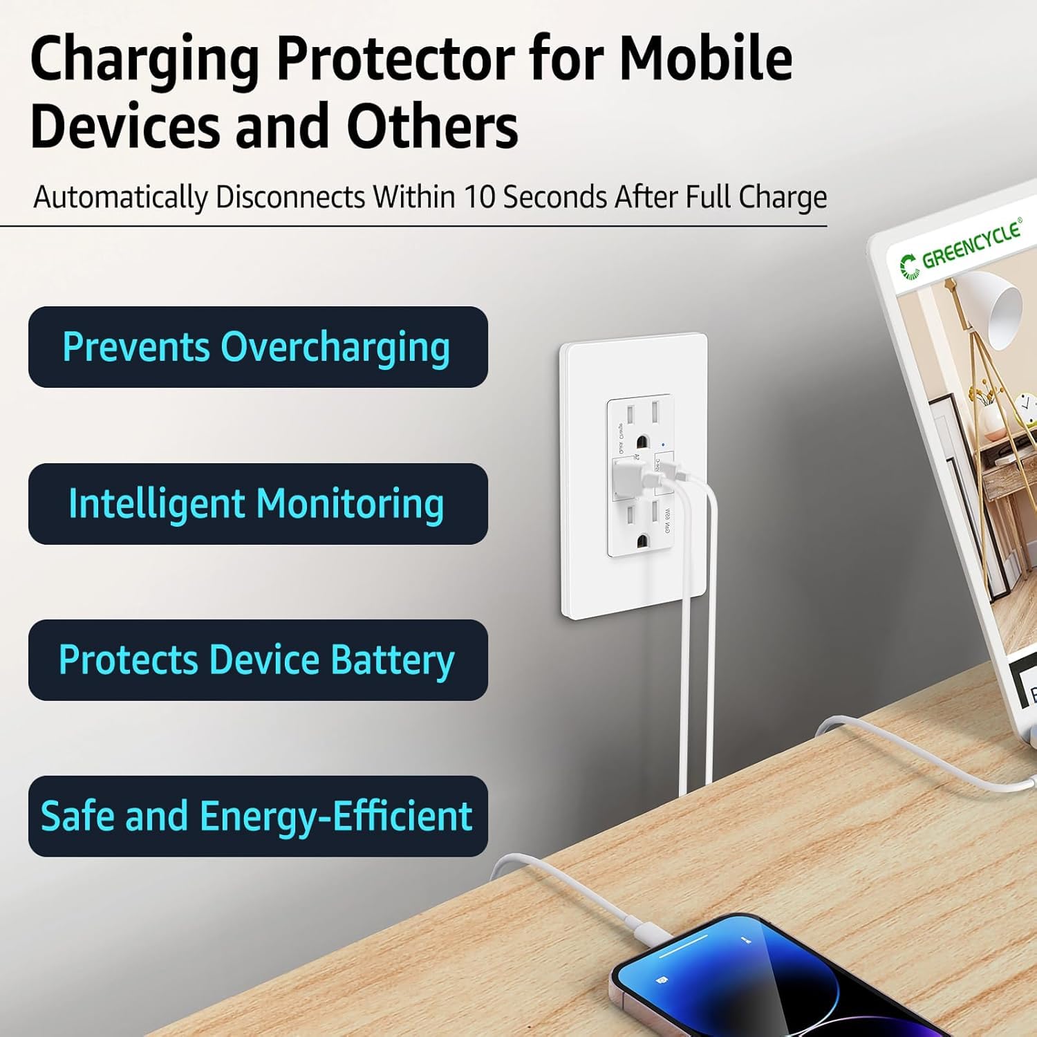 USB C Outlet PD3.0,GreenCycle 1PK GaN 65W Type C Outlet,Fast Charging USB-C Charger,15 Amp Tamper Resistant Receptacle,Electrical USB Socket Charge for Mac Air,iPhone 14 Pro Max,Android,UL Listed+Remote Switch Outlet 2Sets, GreenCyle Outlet Plug with Remote, Wireless On/Off Light Switch Wall Mounted, 15A/1500W, TUV Listed, No Wiring Needed, 500ft RF Range, for Lamps, Fans, Household