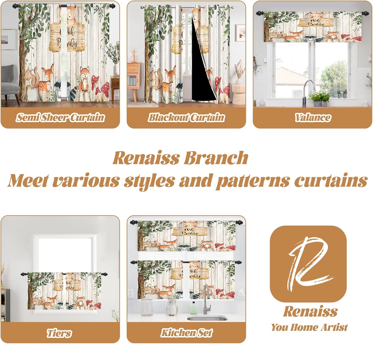 About UsRenaiss mainly deals with products such as light filtering curtains, blackout curtains, shower curtain,table runner and other high-end home furnishings, is a collection of research, development, production and sales as one of the brand.Renaiss advocate the combination of design,craftsmanship,quality,aesthetics and practicality, design curtains with feeling, flavour and tone.bring you a ""relaxed and free"" lifestyle, take you to explore the diversity of life.Writh the persistent pursuit of taste of life,Renaiss digging deep into the design process of the potential value of art to provide you decorative curtains.Worth Choosing♥Our living room curtains made of high quality polyester fabric,durable,wear-resistant and with a good vertical,ideal choice for your home decor.♥Our blackout curtains can keep privacy protection,with high performance in light filtering, thermal insulated protecting privacy and noise reduction.♥Our bedroom window curtains design by high-tech craftsmanship,bright color and vivid patterns, will not fade for longtime to use.♥Suitable for different rooms,can be used to living room curtains, farmhouse bedroom curtains,kids bedroom curtains,dining room curtains,guest room curtains,etc.♥ Our blackout curtains suitable for different rooms,living room,bedroom,dining room,study kids room,playroom,nursery,kitchen,bathroom,offices, classrooms, apartments,restaurants, cafes and hotels,etc.Warm Tips:About aberration:There are slight difference due to different display devices, screen brightness, or light brightness."♥Easy Care:Machine washableUse non-chlorine bleachWarm lronTumble dry low