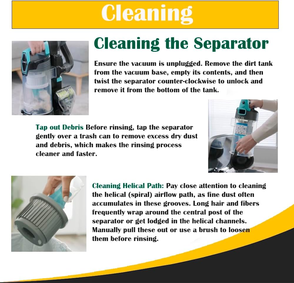 Keep your vacuum performing at its best with this Replacement Separator Assembly compatible For Bissell MultiClean Lift-Off Pet Upright Vacuum Cleaners, designed for Models 2998, 2849, 2852, 2999, 3000, 3057, 3059 Series. also fits PowerLifter Swivel Lift-Off Pet 2920, MultiClean Pet Slim Vacuum Cleaner 31269, 3126, 31268, Healthy Home Vacuum Lift-Off Pet 3125W, MultiClean Lift-Off Pet Slim Vacuum Cleaner 31259, 3125, 31258, 3307 The separator assembly plays a critical role in your vacuum’s cyclonic system by separating dirt, dust, and pet hair from the airflow before it reaches the filter and motor. Over time, the original separator can become clogged, cracked, or worn, leading to reduced suction, poor pickup, and increased strain on the motor. Replacing this component helps restore optimal airflow and cleaning performance. Compatibility: This high-quality replacement separator is constructed from durable plastic and engineered to closely match the original part’s fit and function. Sustained Performance: Regular cleaning of the separator prevents clogs and ensures your vacuum effectively captures dust and debris every time you clean. Washable & Reusable: Designed for convenience and longevity, the robust plastic separator can be easily removed, rinsed under warm water, and reused repeatedly.