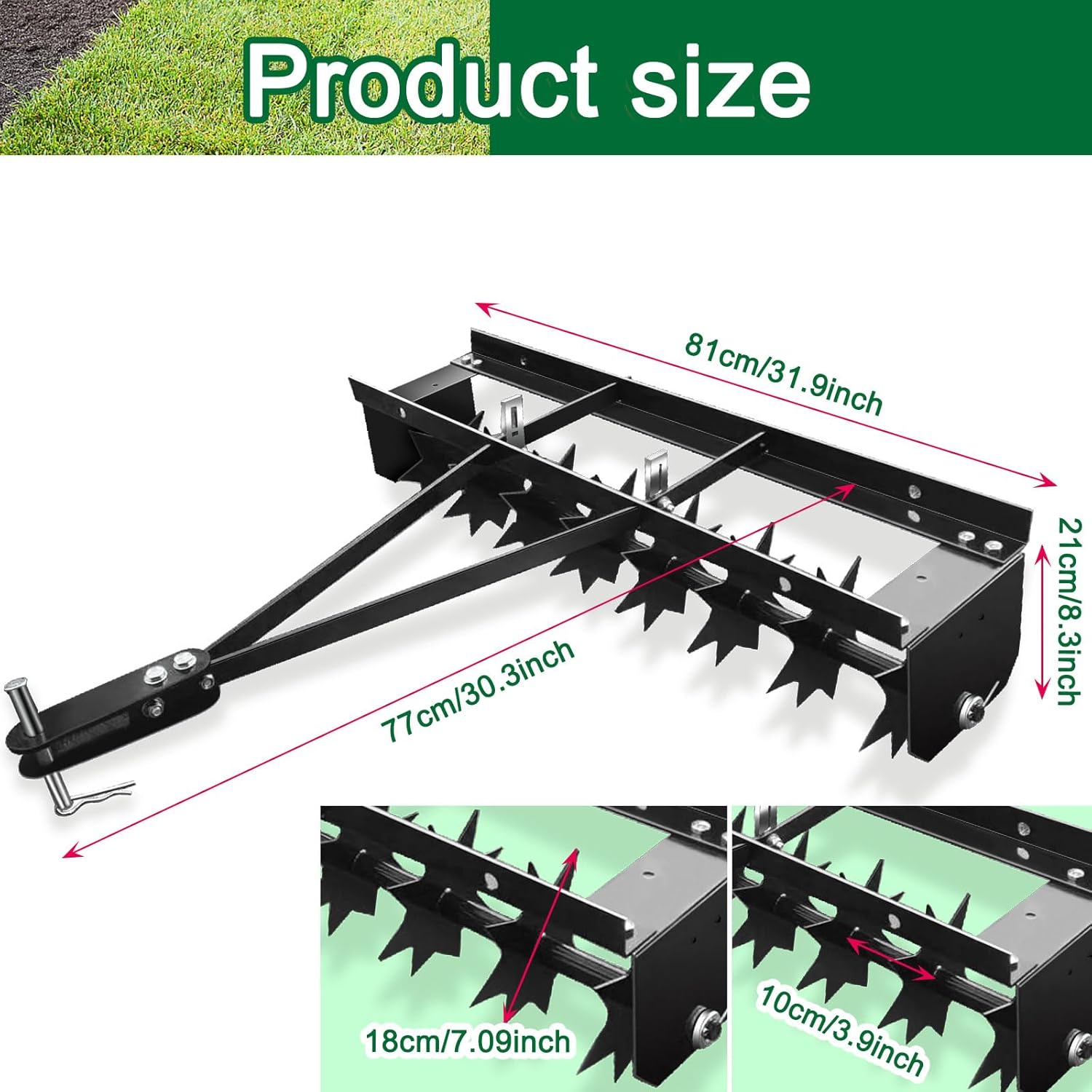 Tow Behind Lawn Spike Aerator is a professional garden tool that can help you quickly and effectively drill holes on the lawn, improve the ventilation and water absorption capacity of the lawn, and ensure the growth and health of the lawn. It is a necessary tool, especially for those who frequently use lawns.