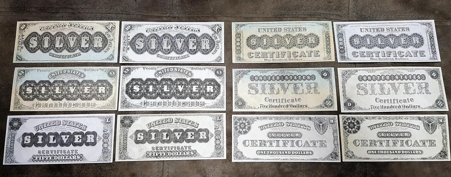 Paper money, United States Silver Dollar 1878 - 1880 years This Lot includes - 12 items: (Upgraded set) (1) 10 - Dollar 1878 RED STAMP (2) 20 - Dollar 1878 RED STAMP (3) 50 - Dollar 1878 RED STAMP (4) 100 - Dollar 1878 RED STAMP (5) 500 - Dollar 1878 RED STAMP (6) 1000 - Dollar 1878 RED STAMP ================================ (7) 10 - Dollar 1880 BROWN STAMP (8) 20 - Dollar 1880 BROWN STAMP (9) 50 - Dollar 1880 BROWN STAMP (10) 100 - Dollar 1880 BROWN STAMP (11) 500 - Dollar 1880 BROWN STAMP (12) 1000 - Dollar 1880 BROWN STAMP