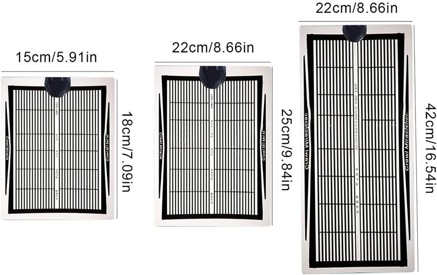 DESCRIPTIONThis reptile heating pad is plugged with a knob, so the temperature can be adjusted manually. Good-quality PET material with transparent protective film to ensure that the heat pad is durable. It has fast and uniform heating, stable performance and long service life.PRODUCT DETAILSName: Pet Heating MatColor:BlackMaterial: PETSize: 15*18CM,22*25CM,22*42CM, 25*55CMPower: 5/15/25/35WAdjusting Temperature: 25-35℃Cable Length: 140cm PACKAGE CONTENT:1* Reptile Heat MatsNOTE1. When washing, gently brush the surface of the heating pad with a brush, and dry it with natural ventilation. High-temperature water or strong acidic detergent shall not be used.2. The switch shape is slightly different from batch to batch, but the size and function are the same.