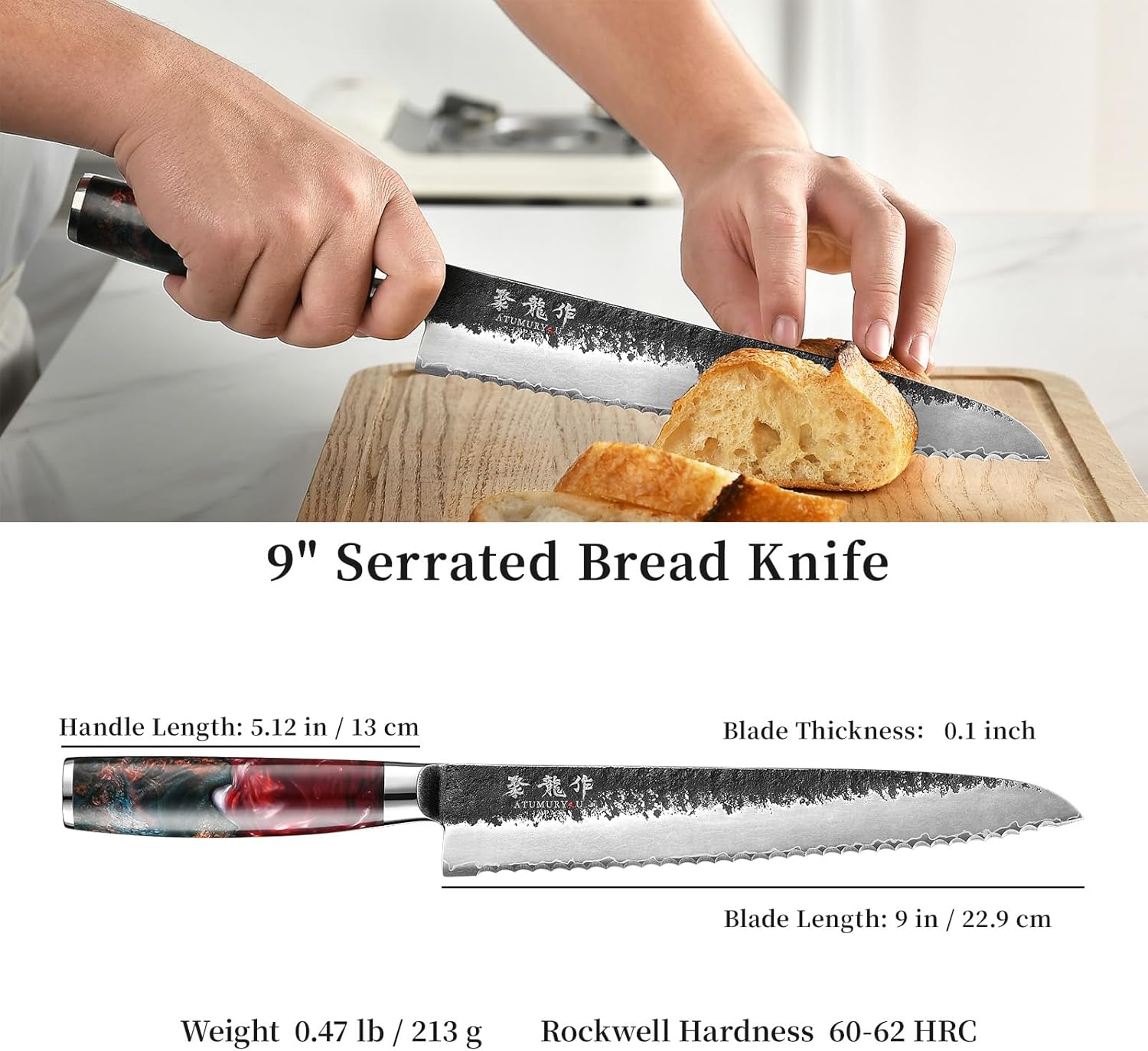 • Premium Gift Bread Knife: This Japanese bread knife comes in a premium gift box and features a traditional black forged finish. It embodies classic Japanese knife aesthetics and makes an ideal gift for sourdough lovers, home baking enthusiasts, and Japanese knife collectors. Suitable for birthdays and retirement gifts for women and men.