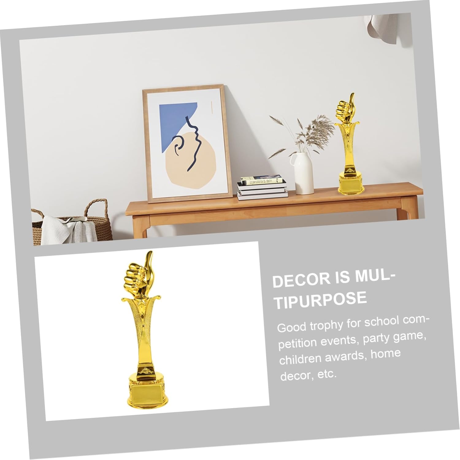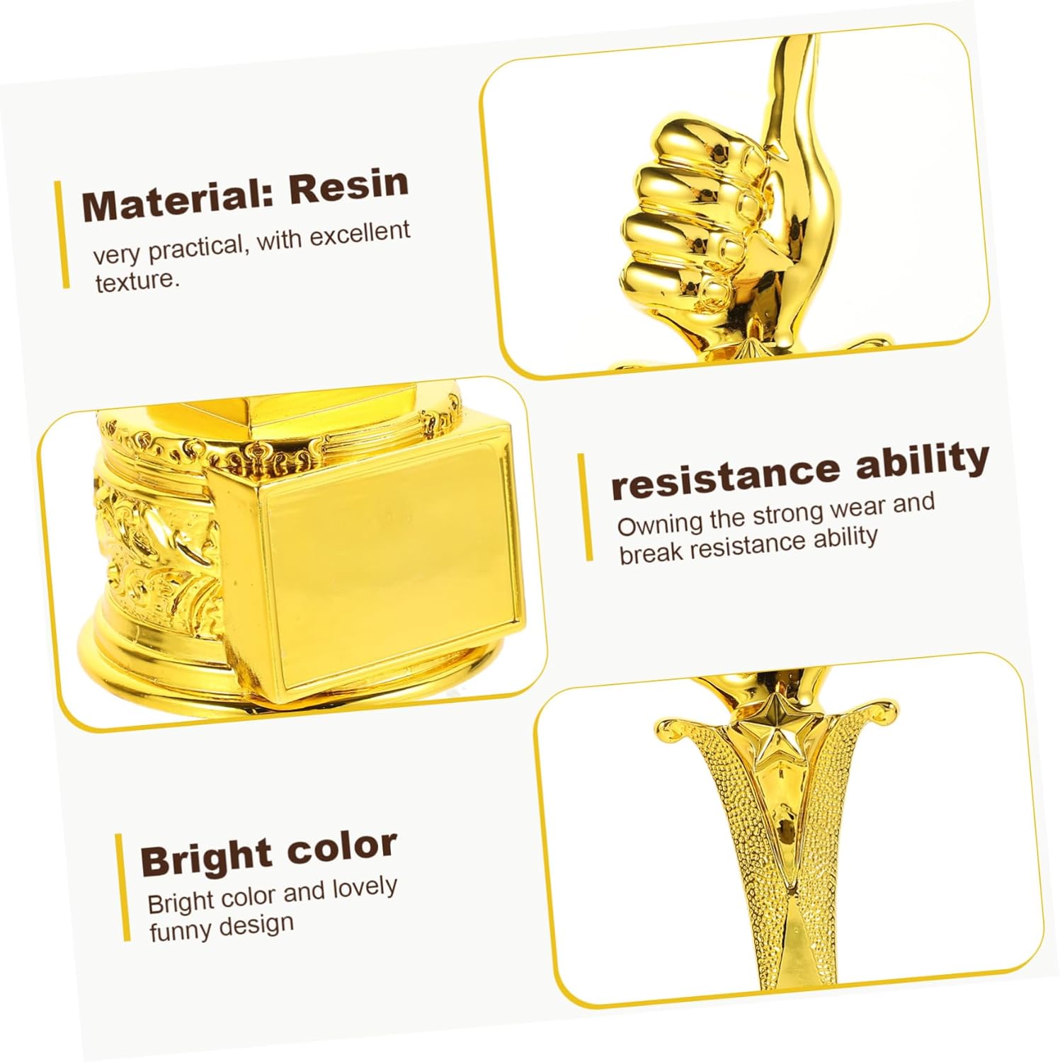 Package List 1 x Trophy Features - Color: Golden Resin trophies prop - Size: About 26.00X7.30X7.30cm/10.22X2.87X2.87in Resin trophies - Material:Resin Thumb Trophy - This trophy is a and can encourage them to participate in various competitions with a positive outlook trophy award. - Thumb Statue Trophy surface never fades and is easy to clean, and every detail is meticulously sculpted. award trophy decor - Delicate detail and fine workmanship make it a practical and unique scene adornment Trophy Decoration. - This trophy is easy to use, and you can place it where you want to decorate it, such as shelf, or desktop resin trophy cup. - You can easily use it to light up a room anywhere, due to its bright color and appearance trophy model.Goods Informationtrophies for adults This trophy model is specially designed for people, which can their learning enthusiasm.decorative trophy cup This item is award trophy, made with resin material for lasting use, practical and creative, with realistic and creative appearance