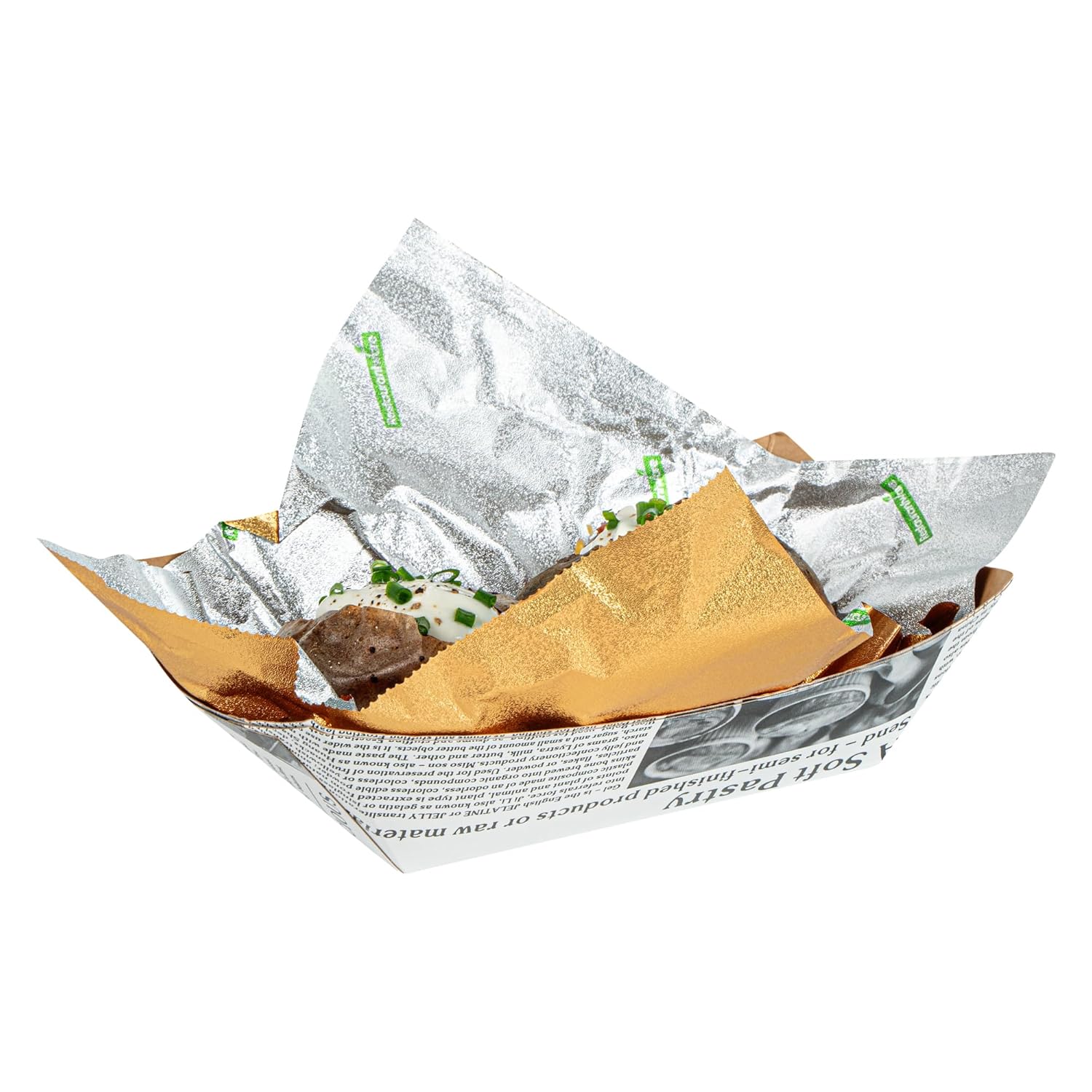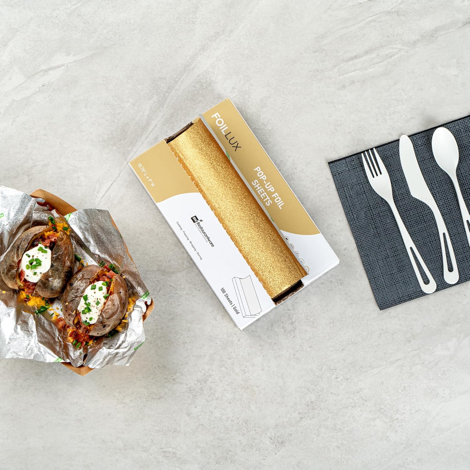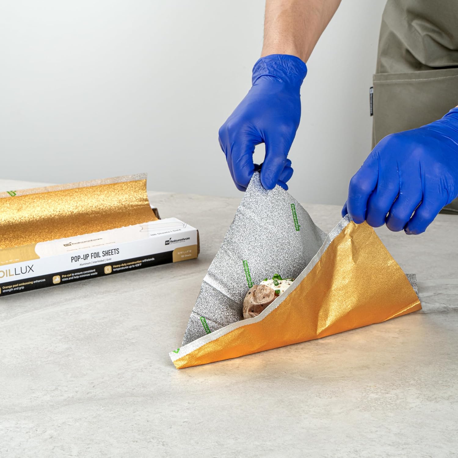 Streamline your cooking, storage, and serving processes with our Foil Lux Foodservice Gold Aluminum Foil Pop-Up Sheets. With a durable aluminum construction capable of withstanding high temperatures without deformation, these pre-cut foil sheets facilitate rapid and efficient food service, cutting out the inconvenience of unrolling and cutting traditional foil rolls. These kitchen foil sheets, distinctive with their orange peel embossing have a premium appearance and provide a robust grip for secure and easy food handling. The interfolded design of these aluminum paper sheets assures convenient use without mess and assists in keeping foods separate and identifiable for kitchen staff. These foil sheets for food align with our commitment to the environment by being disposable. Withstanding temperatures up to 428F, these pop-up foil sheets can be used for freezing and baking. Cleanup is effortless as these embossed foil papers are greaseproof. Ideal for concession stands, fast food restaurants, or snack bars, these aluminum foil sheets measure 10.8 inches long by 9 inches wide. Sold in a 2,000 count box.