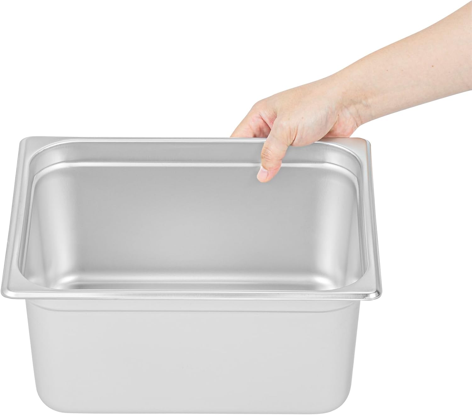 Elevate your culinary display with our Kitchen Tek Stainless Steel 1/2 Size Steam Table Pan. The unique anti-jam design of this steam table pan ensures it separates smoothly, simplifying setup and service in bustling kitchens. This hotel pan is made from 24-gauge stainless steel and is built to endure the daily demands of commercial food environments. Pair this steam pan with its compatible lids (SKUs: RWT1611S-1 and RWT1619S-1) to ensure your culinary creations remain protected and ready to serve. Adhering to NSF standards, this table pan meets the requirements for the commercial foodservice industry. Boasting a 6-inch depth, this stainless steel pan is ideal for voluminous dishes and layered culinary delights. This metal pan is oven-ready up to 1600F and ideal for various cooking applications. For storing your prepared meals, this catering pan is freezable, allowing you to preserve food conveniently for later use. Designed for enduring performance, this 6-inch deep pan accommodates both heated entrees and chilled salads. This rectangle pan ensures cleanup is a breeze as it is constructed to withstand the rigorous cycles of a commercial dishwasher. Each metal catering pan measures 12.8 inches in length by 10.4 inches in width by 6 inches in depth. Sold in a 1 count box. Lids are available and sold separately.