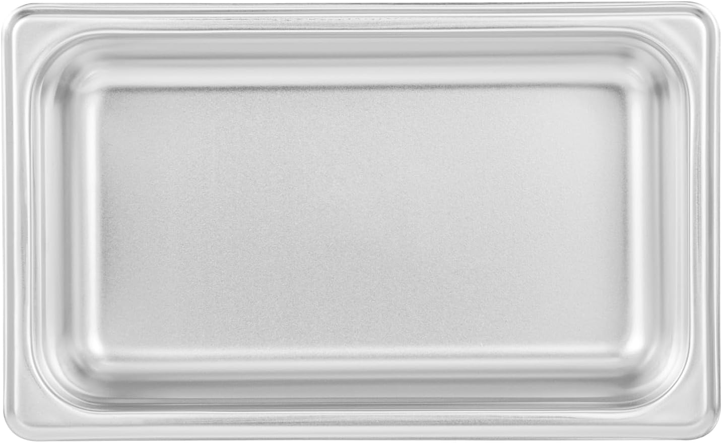 Revolutionize your buffet or catering service with our Kitchen Tek Stainless Steel 1/4 Size Steam Table Pans. The anti-jam stacking lug feature in these stainless steel pans facilitates no-hassle separation and effortless lifting. These steam pans are crafted from 24 gauge stainless steel for premium durability to withstand the daily rigors of restaurant operations. Pair these buffet pans with its compatible lids (SKUs: RWT1613S and RWT1621S) to ensure a snug fit and protect your food. These hotel pans comply with NSF standards of the foodservice industry. Featuring a 1/4 inch depth, these steam table pans are ideal for serving a range of dishes such as miniature quiches, sliced fruit, and bite-sized appetizers. Boasting a heavy-duty design, these metal buffet pans ensure longevity and are ideal for serving various hot and cold food items. Crafted for oven use, these food steam table pans are engineered to endure temperatures as high as 1600F. These stainless steel catering pans are freezable, allowing you to store your prepared meals for future consumption. For effortless post-service cleaning, these metal pans are suitable for use in commercial dishwashers. These catering pans measure 10.4 inches in length by 6.4 inches in width by 2.5 inches in depth. Sold in a 12 count box. Lids are available and sold separately.