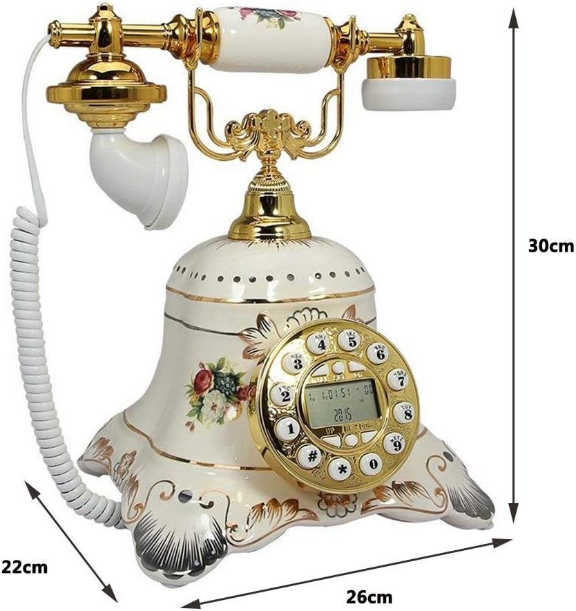 The simple and elegant desn of the wired telephone makes it the perfect decoration for bedrooms, living rooms and offices. Name: Ceramic antique telephone Material: ultra-temperature ceramic + hand-painted Process: ceramic firing Size: 26x22x30cm Weht: 2.3kg Note: Manual measurement, there are 1-2 cm error, please understand Tip: We only sell the telephone, do not include other products