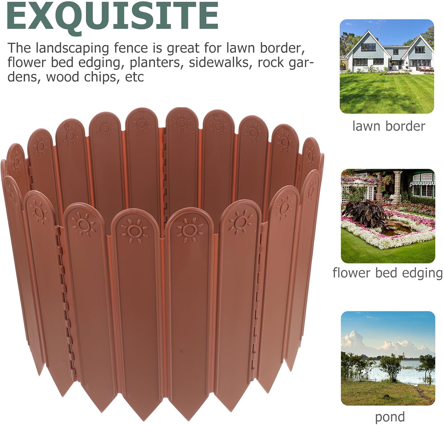 Package List 1 x Bag of Plastic Fences Characteristics - Size: 200.00X27.00X0.10cm/78.60X10.61X0.04in - Color: Brown -Material:Plastic -Product Info:Fence fence -Decorate your garden with this reusable garden edging kit to perfectly define your lawn and garden beds garden edging border. -The courtyard partition fence is perfect for the garden as well as yard scene layout decor garden border fencing. -The lawn edging border with wonderful workmanship ensures the delicate details and beautiful appearance fence panel. -The perfect fence is suitable for home, backyard, can also be used as a garden fence fencing for garden beds. -The plastic fence will decorate your landscape and create a pastoral atmosphere. Very easy to assemble and disassemble, and even easy to clean and maintain garden decorative fence.Goods Informationoutdoor garden fence Meanwhile, it has a simple and appearance design.garden fencing border Adopted with plastic material, can keep it for a long time.garden fence If you are looking for a garden fence with , I will tell you that our fence will be your