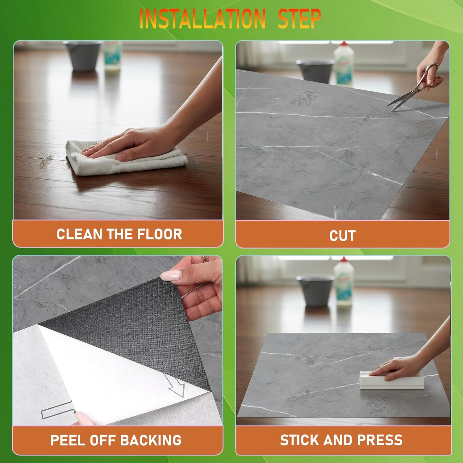 | Included Components | peel and stick vinyl flooring |
