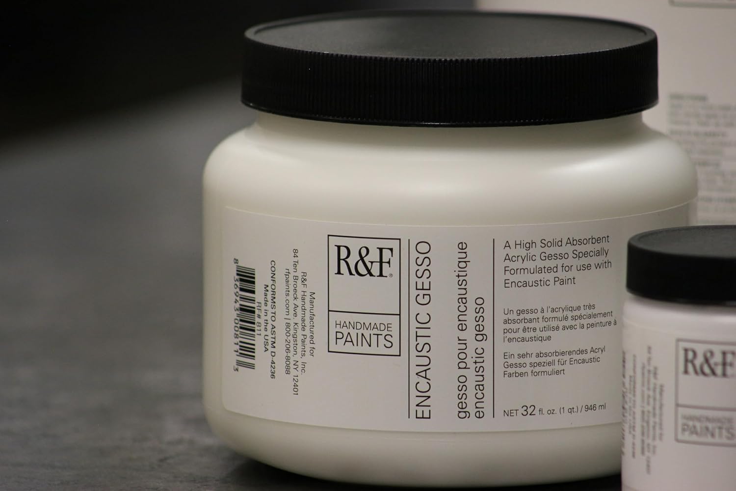 R&F Encaustic Gesso Quart is a ready to use white ground specifically designed for encaustic painting. This gesso has a higher proportion of solid to binder, making it an archival, highly-absorbent ground.
