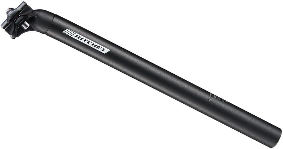 Ritchey: Proven 2-bolt design provides a class-leading balance between strength, weight and easy adjustability. Low-profile clamp reduces stress on lightweight rails and won't bottom out.Material: 6061 alloyDiameter: 26.8, 27.0, 27.2, 30.9, 31.4, 31.6mmTotal length: 300, 350, 400mm (including 100mm of minimum insert)Offset: 25mmSaddle clamp: standardSaddle clamp torque: 13Nm (max)Seat collar torque: not specified - follow frame/seat binder specificationWeight: 260g (27.2x350mm)Colour: BB black