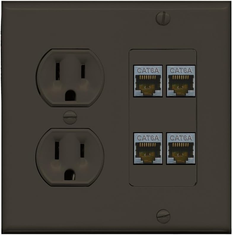 | Included Components | 15 Amp/125V Duplex Outlet, 2 Gang Round Plate, 4 x Female Jacks (Assembled), Screws |