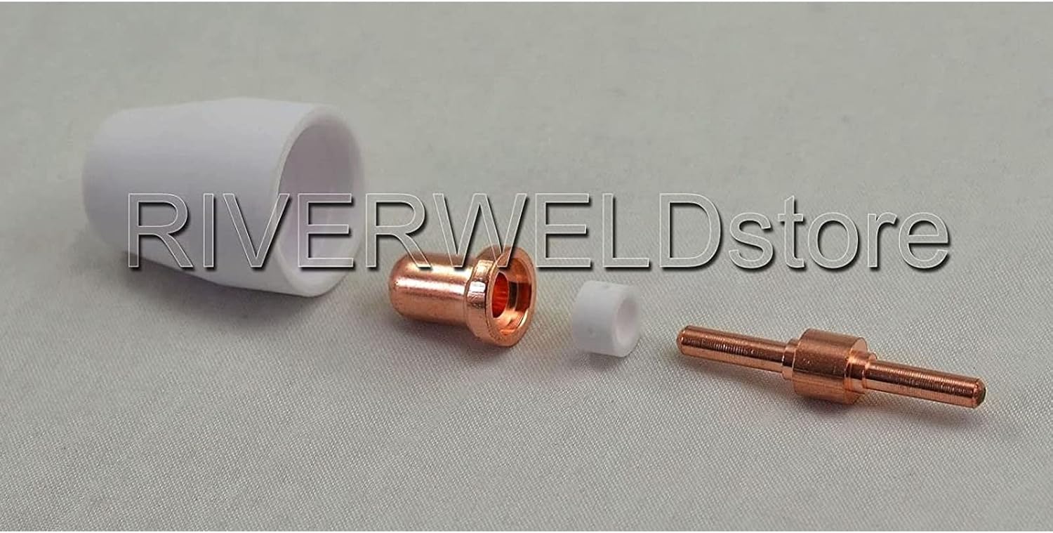 The consumables can work with PT-31, JG-40 and WSD-LG40 Cutting Torch, these torches for Plasma cutting machines such as CUT-40, CUT-40D,LGK-40, CT312, CT312D,CT416,CT416D,CT518, CT518D, Super160, Super160P etc. *The Brand of Machine would be Rilon, Riland, Jasic, Mitech, Chiry, Krypton, Longetivity, Berlan and so on. Rated welding current: 40A Max Cutting thickness: 12MM 200 pcs package including following: 100pcs TIPS - Extended Ref No: 18866L 100pcs ELECTRODES- Extended Ref No:18205L