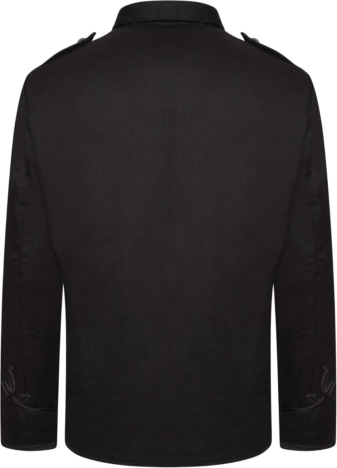 High quality parade jacket with black rope to the front and 55 silver/gold coloured metal buttons to the front and shoulders. Outer jacket of 100% cotton, lining of 100% polyester. Available in XS to 3XL (standard men's sizes).