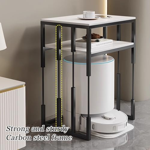 Introducing our versatile Robot Vacuum Storage Cabinet, designed to seamlessly blend functionality and style into your home. This sleek cabinet features two open storage layers, perfect for organizing everyday items such as cleaning supplies, remote controls, or personal belongings. Crafted from durable carbon steel, the cabinet offers a robust structure while enhancing your decor with elegant color options including Gold and White, Black and Gray, and more. Its spacious bottom area accommodates most robot vacuum models, ensuring your device is neatly tucked away yet easily accessible when needed. Whether placed as a bedside table, coffee table, or side table, this cabinet effortlessly fits into any room, providing both utility and a touch of sophistication. Best of all, it requires no assembly, allowing you to enjoy its benefits right out of the box. Please note that due to handcrafting, slight size variations of 1-2 cm may occur. Additionally, lighting and screen settings may affect color perception, so the actual product may differ slightly from images. Before making your purchase, ensure that your robot vacuum fits comfortably in the designated storage area to maximize compatibility. Upgrade your home organization with our Robot Vacuum Storage Cabinet today and experience the perfect blend of convenience and style.