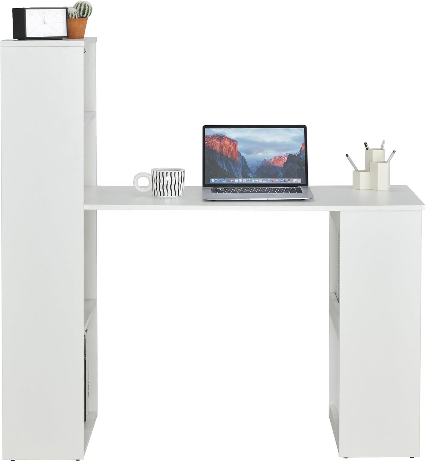ROCKPOINT Bookcase Computer Desk for Small Home Office Bedroom, Homework and School Studying Writing Desk for Student with PC Stand, Laptop Desk,White