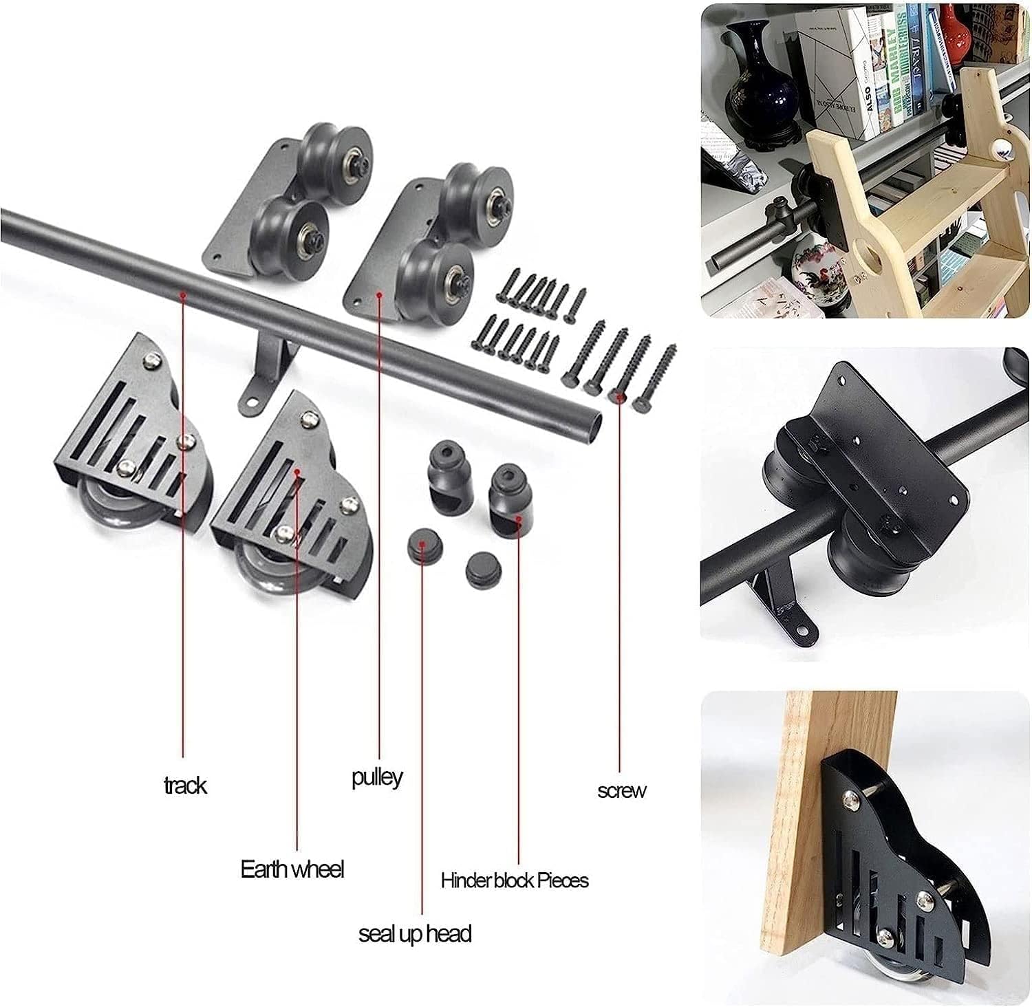 With this track, you can go anywhere you want, perfect for libraries, attics, pantries, cloakrooms, wine cellars, and more. With this track, it is more convenient, safe and effortless to climb up to get things, which perfectly solves the troubles and dangers of fetching things from high places. Bring another highlight to your home and assure you of superior quality. Ladder slides are the best gifts for family and friends,Feature:Length: 3.3ft-20ft/100cm-400cm, these sizes can be spliced with more sizes√ Easy to install√ Wrought iron track, very durable.√ Safe and convenient, making it safer and more convenient for you to take things from a high place.√ Low noise, sturdy track.√ Track length: can be customized (contact us by email).
