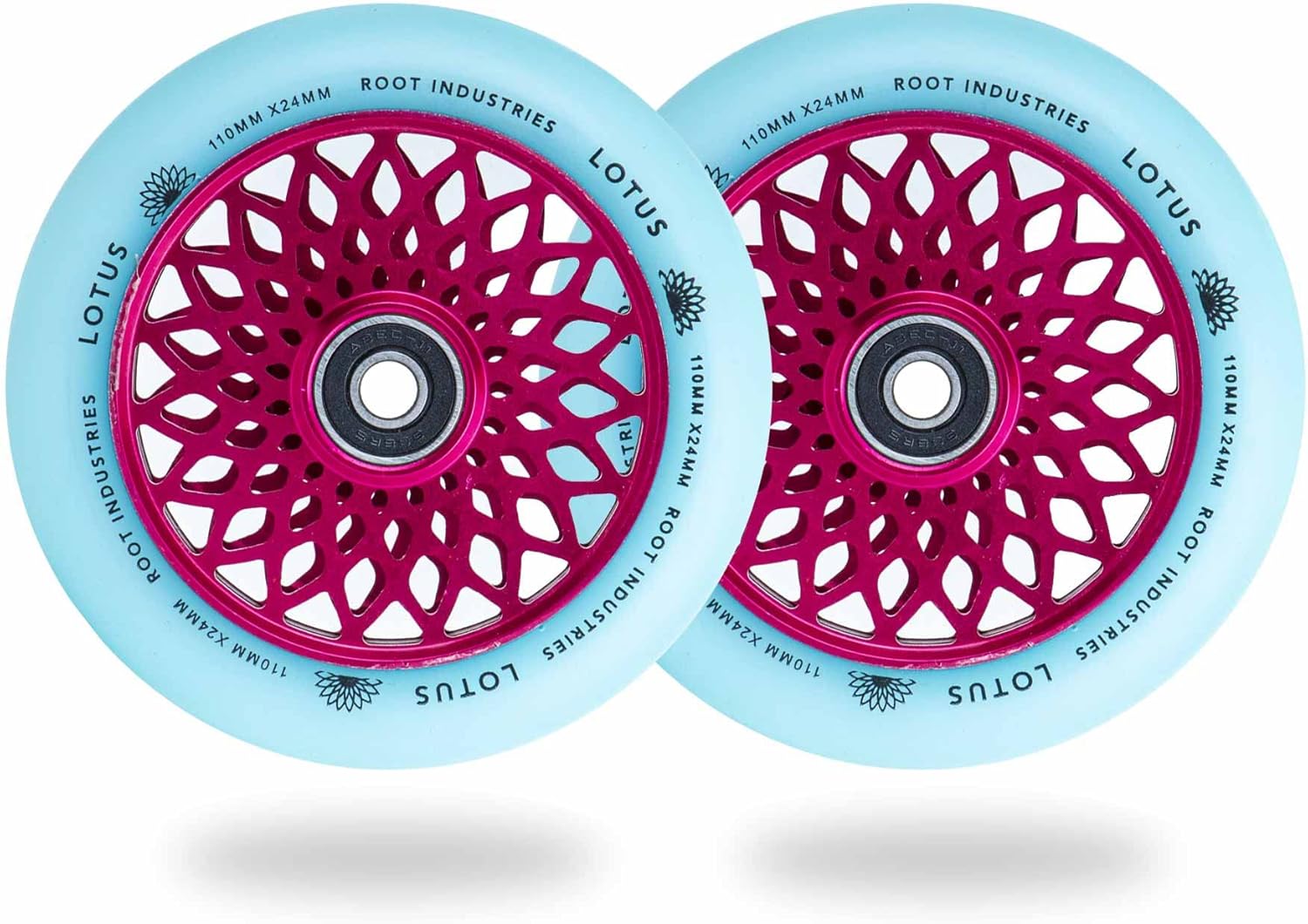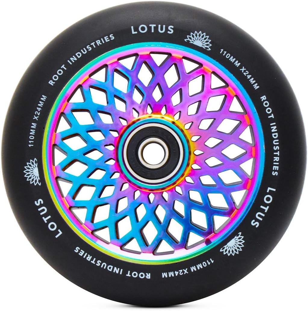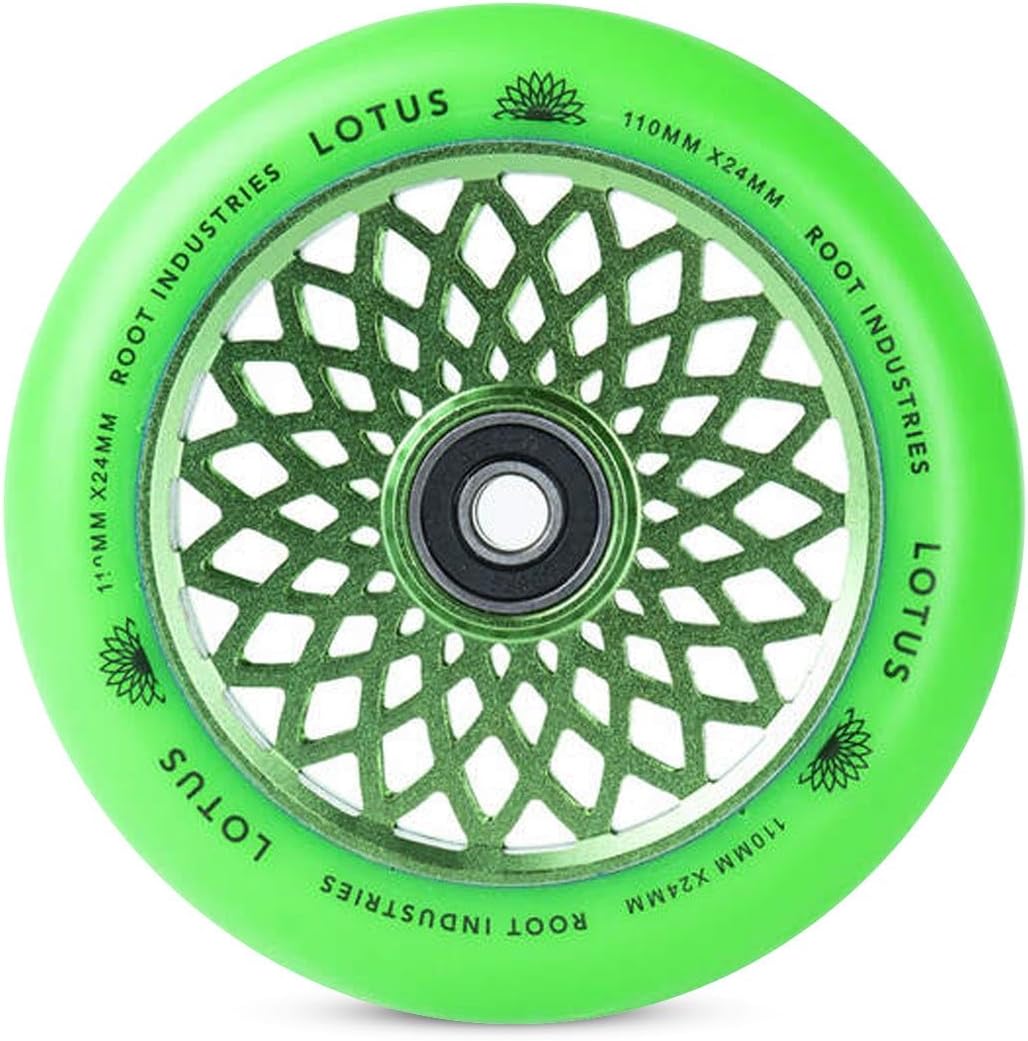 The Lotus wheels are take on a fresh look and size for the New Year, coming in at 110mm x 24mm! The all around width of 24mm will allow riders with practically any fork or deck to ride these wheels. The Lotus wheels come with Root's signature quality, so these are bound to exceed your expectations of what a good wheel is. Size: 110mm Core Width: 24mm Urethane Width: 24mm Core Material: Aluminum Urethane Rating: 88a Bearings included: Yes Sold as: Pairs
