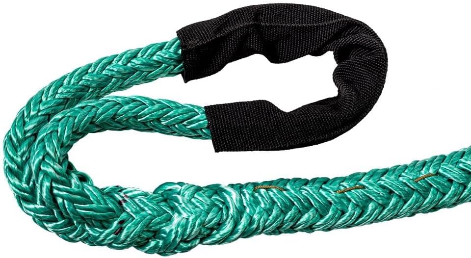 The eye sling is perhaps the most versatile tether for rigging hardware, this one is made with 19mm Samson Tenex 12-Strand Single Braid, Sling-Grade Polyester, 25 ft. in length. A block, Portawrap or other device is secured within the sling’s eye, and a choking hitch such as a cow hitch or timber hitch is tied using the running end. Although one must know knots to use an eye sling, there’s no arguing its efficient simplicity. This ropes construction is stronger and more flexible than others because of its loosely woven, hollow construction. Since there is no core to this rope, abrasion wear is distributed throughout the cordage where it can be more easily monitored. 22,000 pound tensile strength, 2,200 pound WLL, weighs 4.9 pounds.