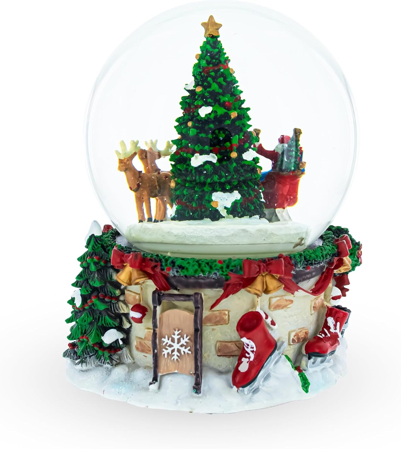 Complete your holiday decoration needs with our exclusive variety of Snow Globes by BestPysanky. Originally created in 1889 in France, Snow Globes have been a common household decoration for many years. This charming Christmas Snow Globe features a rotating Santa Claus around and Christmas tree - each spinning opposite directions inside a glass water globe. This is a truly unique piece, decorated with Christmas presents, snowman, sleigh, and two dogs around the base. It plays a holiday tune Inches We Wish you a Merry Christmas" when wound-up while rotating. -7 Inches Tall x 5 Inches Base Diameter -Hand Painted -Plays Holiday Tune "We Wish you a Merry Christmas" -Windup Mechanism -No Snow Inside -Resin Base -Glass Globe -Tree and Santa Counter Rotate Inside Globe -Gift Boxed Snow globes are remarkably popular gifts, and it's not hard to see why. These delicate glass orbs contain a miniature winter wonderland, complete with sparkling snowflakes and hand-painted figurines. There are many different styles to choose from. In addition to their visual appeal, many snow globes also play Christmas tunes when they are shaken. This added touch can help to create a festive atmosphere in any home. Best of all, they come in attractive gift boxes, making them easy to wrap and give. Whether you're looking for a special holiday gift or a charming decoration for your own home, a snow globe is sure to please.
