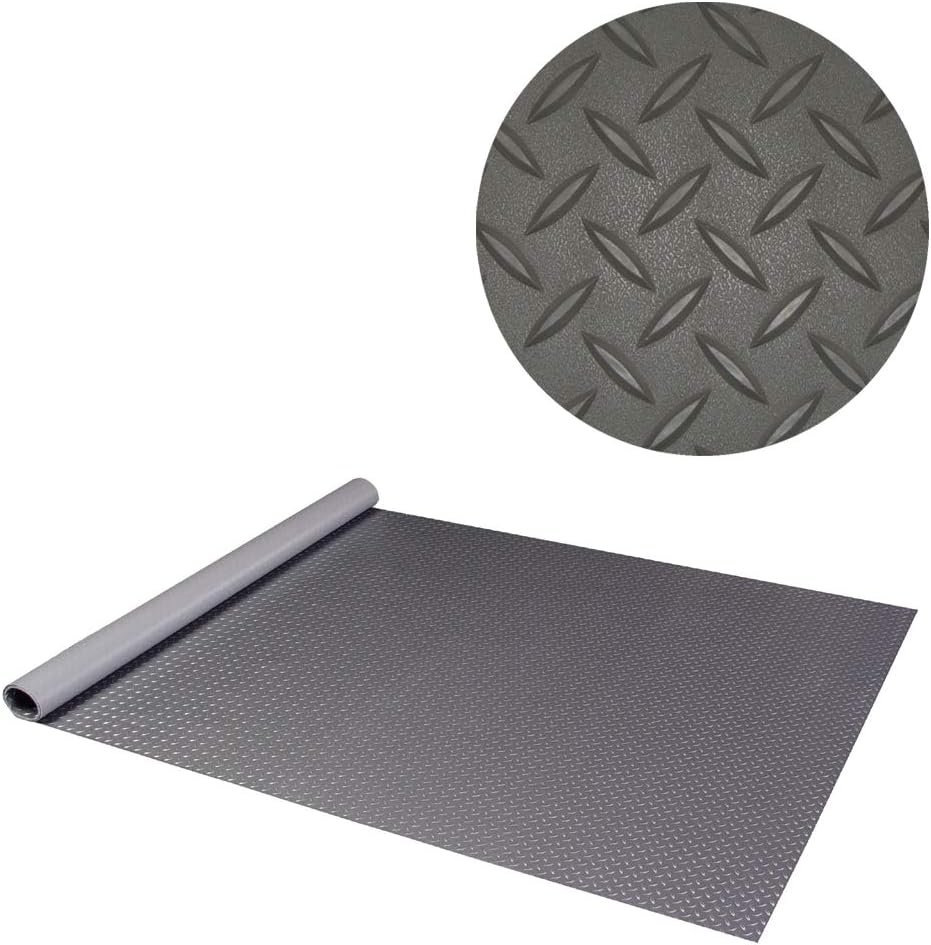 Diamond Deck roll out flooring protects your floor, while giving it that stylish rugged look. Simply roll out and you're done. Can be easily cut to any size, with a utility knife or scissors. Use as a parking pad or cover the entire garage floor. Resists oil, gasoline, brake fluid and antifreeze. Diamond Deck is unaffected by battery acid, making it the ideal golf cart mat. Great for workshops, basements, trailers, laundry rooms, mud rooms, bathrooms, motorhomes camping and more. Perfect whether you need a temporary or a permanent flooring solution, that is tough, waterproof, durable and easy to install.