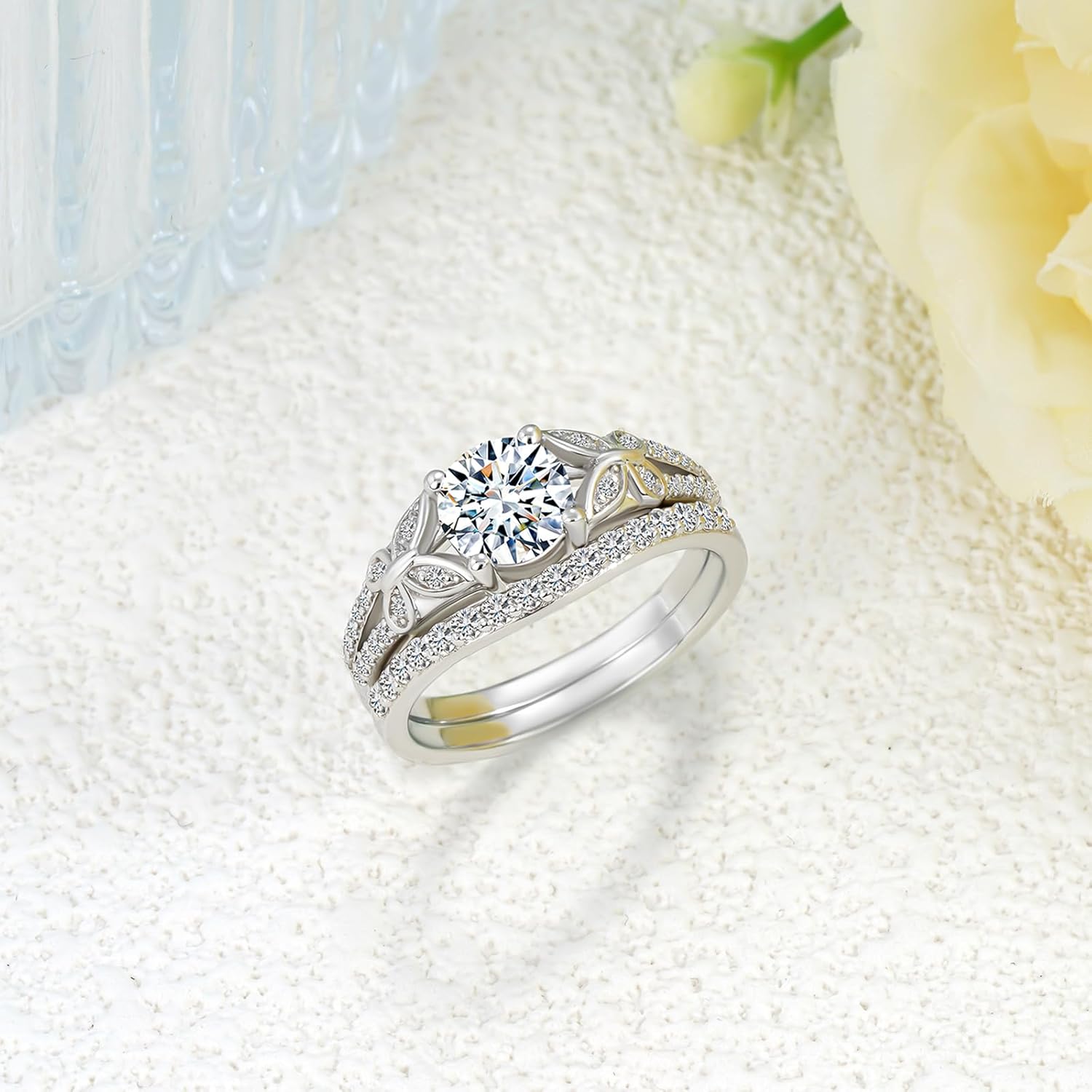 Round-Cut Moissanite Engagement Rings Sets for Women,10K 14K 18K Real Gold Butterfly Wedding Rings Sets,Bridal Ring Sets with Free Engraving