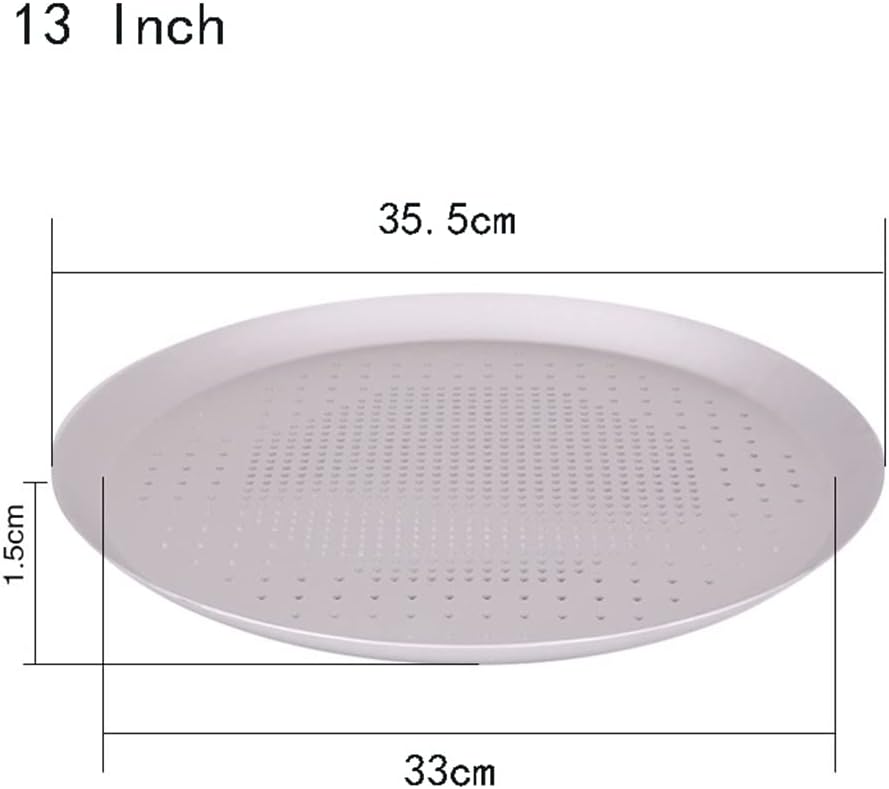 great choice for making crispy pizza. Seamless appearance design is easy to clean. With hole design, it supports fast heat transfer. Smart and durable anodizing is efficient. It has large aluminum performance and good thermal conductivity. Great for all baking occasions, such as party pizza shops, etc. Specifications: Material: Aluminum Size: 35.5x33x1.5cm Packing list: 1 pizza pan Notes: Due to lighting effects and shooting angles, there is a color difference in the product, please understand. Due to manual measurement, there is a tolerance in the product size.