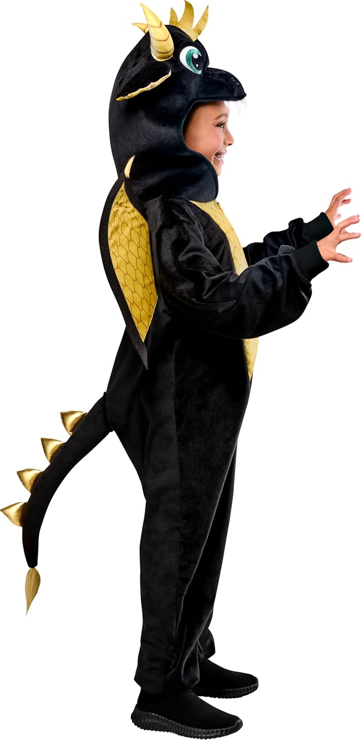 Let your child take flight in fiery style with the Rubies Kids Black Dragon Hooded Jumpsuit Costume! This bold, mythical outfit features an all-black design with an attached hood showcasing fierce dragon eyes and spikes. Built-in wings and a long, swishy tail complete the legendary look, perfect for Halloween, costume parties, or everyday imaginative play. The soft, comfortable fabric and easy zip-up front make dressing a breeze, while the dramatic details inspire endless fantasy adventures. Whether they're soaring through the skies or guarding hidden treasure, your little dragon will feel powerful and ready for fun. With Rubies trusted quality, this costume turns any kid into a creature of epic imagination!Since 1951, Rubies has been a trusted name in fun, offering safety-tested costumes, wigs, masks, and accessories for kids, adults, pets, and décor. Now part of a global family of brands, Rubies delivers both licensed and original styles designed with quality, comfort, and creativity in mind. From Halloween to everyday play, our wide assortment helps bring imagination to life with on-trend looks and iconic characters. With over 70 years of experience, Rubies continues to inspire unforgettable moments for the whole family—year-round.