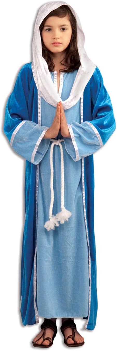 Transform your little one into the blessed Virgin Mary with the Rubies Mary Deluxe Costume for Kids, a stunning ensemble that beautifully embodies the Mother of Jesus. This exquisite costume features a lovely combination of two shades of blue, including a light blue underdress that flows gracefully beneath a darker blue robe. The attached white headpiece adds an elegant touch, making it easy for your child to portray this iconic figure. To complete the look, the costume comes with a stylish rope tie belt for a perfect fit. Ideal for nativity scenes, church pageants, or themed events, this Deluxe Mary Costume will make your child shine in any setting!Since 1951, Rubies has been a trusted name in fun, offering safety-tested costumes, wigs, masks, and accessories for kids, adults, pets, and décor. Now part of a global family of brands, Rubies delivers both licensed and original styles designed with quality, comfort, and creativity in mind. From Halloween to everyday play, our wide assortment helps bring imagination to life with on-trend looks and iconic characters. With over 70 years of experience, Rubies continues to inspire unforgettable moments for the whole family—year-round.