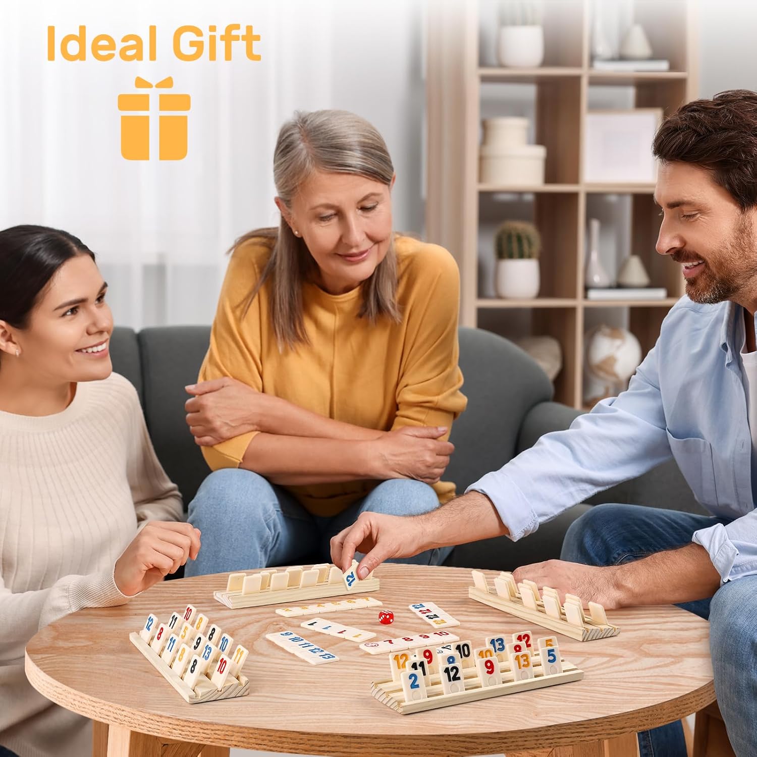 | Included Components | 106 rummy tiles + 4 wooden racks + a portable zippered case + an instruction |