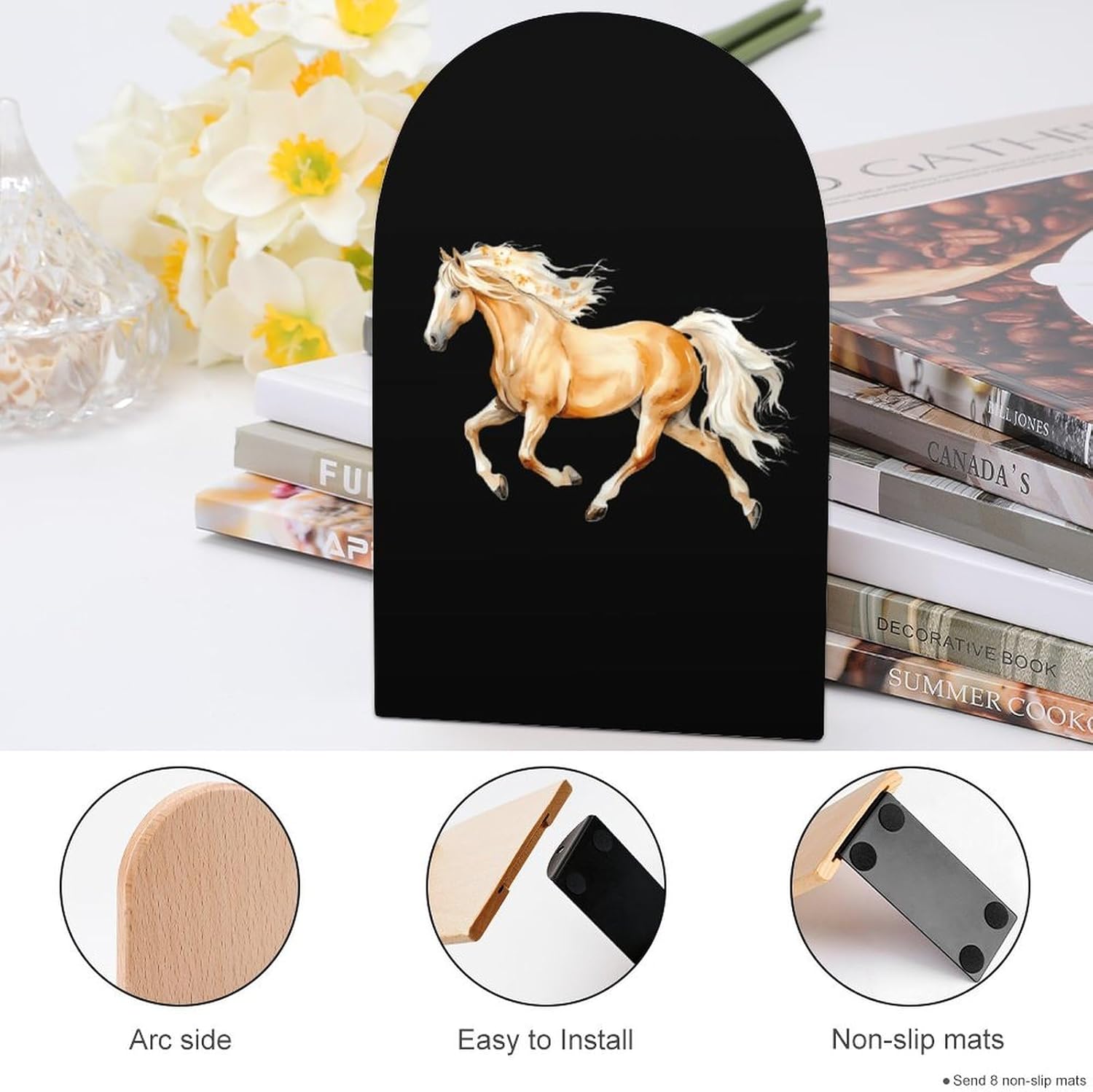 Custom Bookend Wood Book Ends for Shelves Cute Book Shelf Holder Home Decorative,the book end protect your bookshelf or furniture from scratching when you move the bookends
