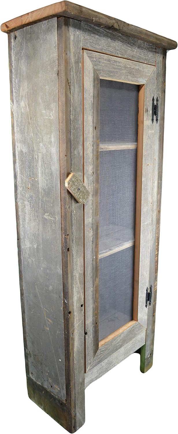 This towering cabinet, standing at an impressive 4 feet tall, is a testament to the beauty of aged wood. Handcrafted from reclaimed barn siding, each piece boasts a unique patina that tells a story of its past life. The solid structure exudes rustic charm, while the screened front doors offer a glimpse into the interior, perfect for displaying treasured items or adding a touch of intrigue to your decor. Please note that the barnwood color may vary slightly due to the nature and color of the reclaimed materials. With its sturdy construction and captivating presence, this cabinet is sure to become a focal point in any room, seamlessly blending vintage allure with modern functionality. Large screened front barn wood storage cabinet - 4 feet tall with 3 shelves. there is plenty of room to display all your crafts. Solid structure is handcrafted out of aged barn wood in excess of 100 years old. Can be used to store your soup cans, and other food items. Put your country treasures in and show them off leaving the door open while hanging a tea towel over the door. The possibilities are endless A great addition to accent any rustic country, primitive, farmhouse, or cabin decor. Barn wood color may vary depending on the reclaimed barn at the time it was torn down. It will vary from red, gray, or touches of white.