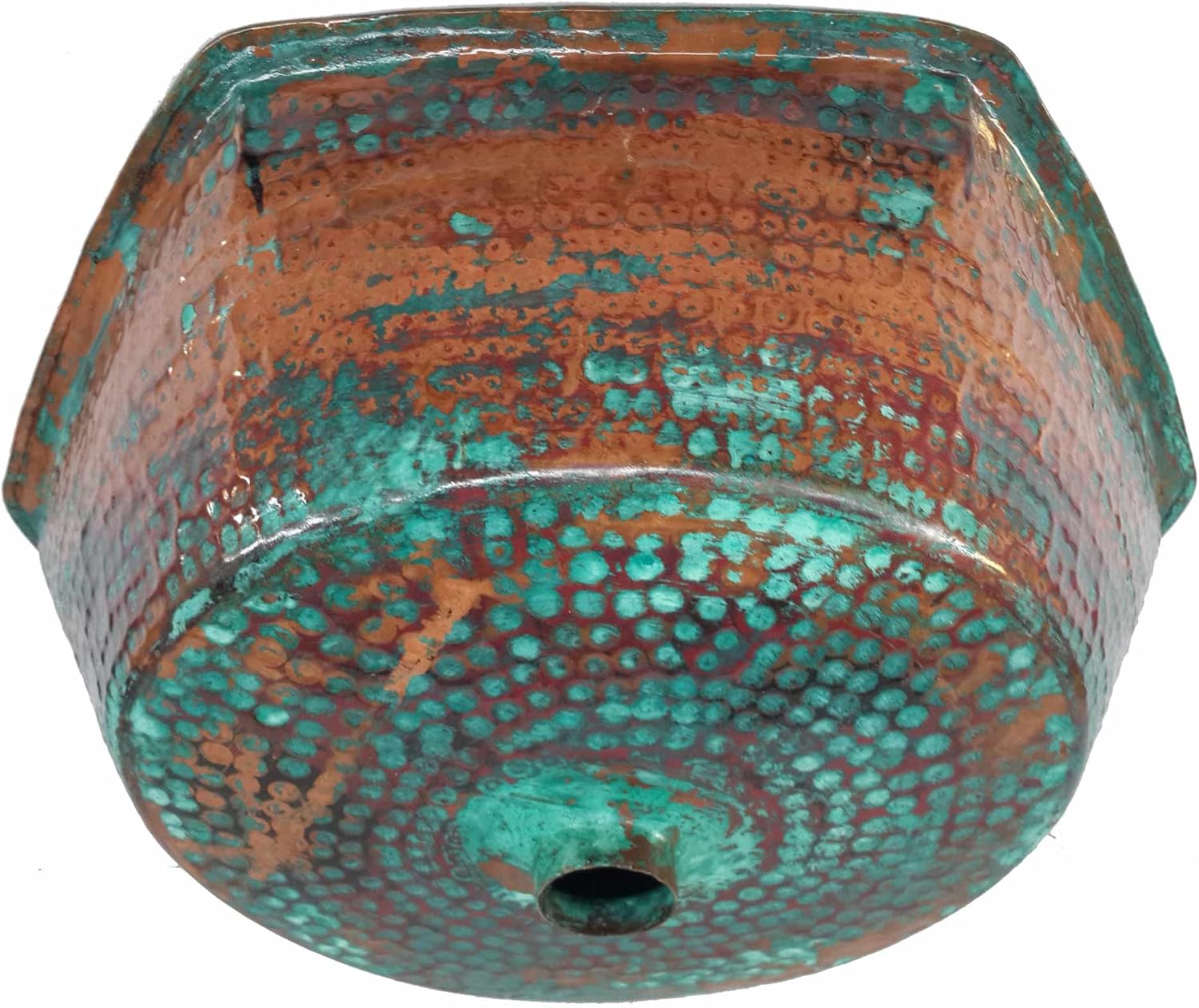 Size: 16X16X5 inches. Shown drain cover is not included. Imperfections to be expected due to hand making.Copper has the best combined properties of any other metals as it is durable, recyclable, earth friendly, natural and reusable. Copper has been used for buildings, bridges, weapons, decorative jewelry and hand tools for long time through history. Copper is highly sensitive to heat conduction, spreads heat evenly and saves energy. Copper cookware comes in original bare surface or tin lined based on type of the food. Copper reacts with various elements through time. Natural copper oxidation will add beauty to any decor. Enamel clear wax will help to minimize the oxidation process. Copper maintenance includes avoiding water spots and using soft cloth and regular water to clean copper surface. Our copper bathroom sinks products are lead and mercury free, eco-friendly and green solution to implement the practices that will lead to healthier living for the planet and our future generations. We do not use recycled copper to hand make our copper sinks. We use pure, virgin unsealed copper.