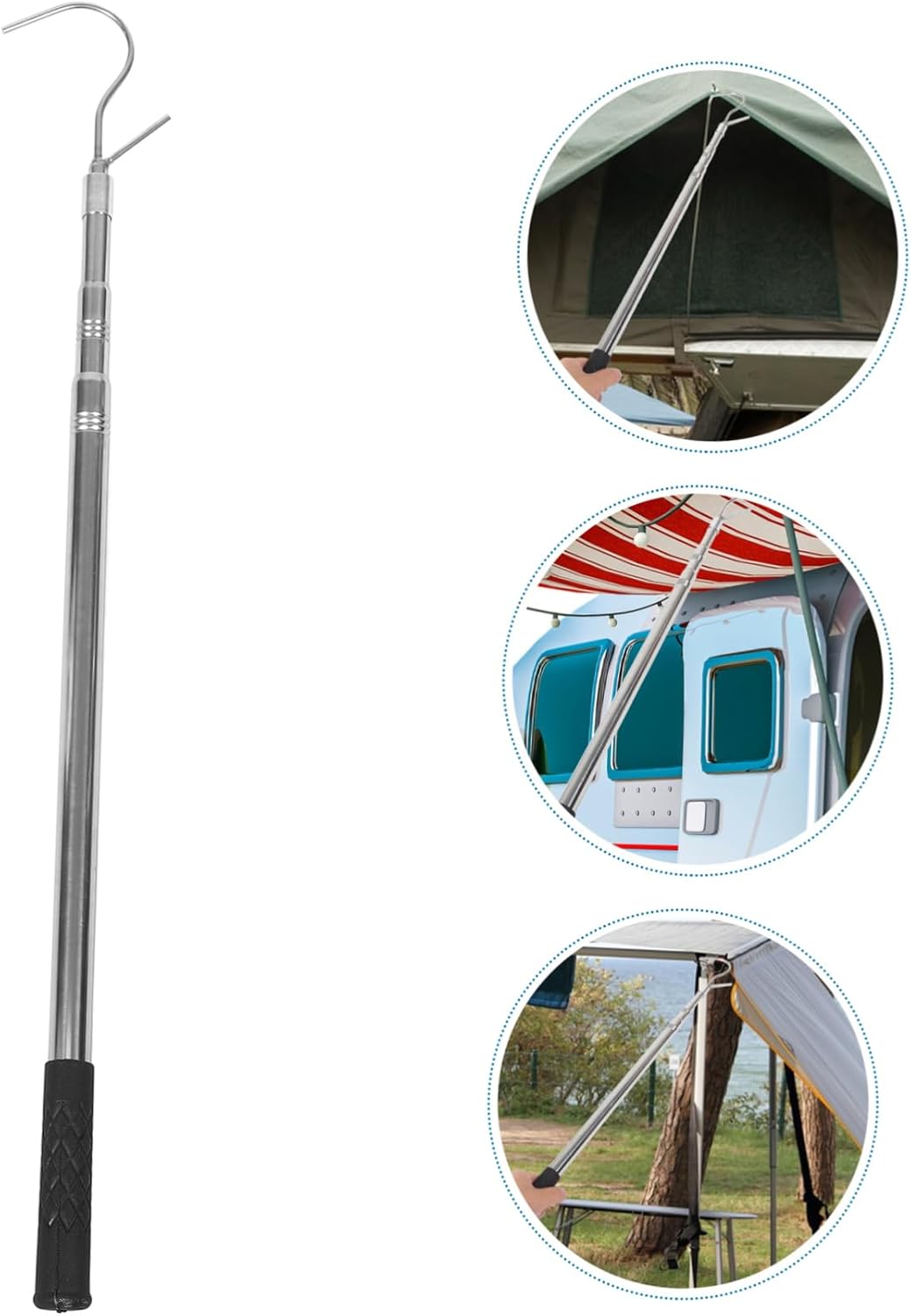 Package Include 1 x Puller rod with hook Characteristics -Color:Black window blind puller -Size:150.00X10.00X2.00cm/58.95X3.93X0.79in hook stick -Adjustable: 60cm-1.5m pulling hook with long pole -Material:Stainless steel sunshade rod -This pulling rod is for setting up tents, shelter and camping awnings awning opener. -This rod is is durable and stable, with a quick extension and retraction feature curtain rod. -With this awning pulling rod, you can pull up awning more convenient and easily, saving time or effort sunshade accessory. -A must-have tool for outdoor enthusiasts. This is portable and easy to carry and use sunshade puller. -The tool features a pole with an included hook. This awning pulling rod is practical tool for camping or picnic long pole hook.Goods Descriptionadjustable rod Its portable design makes it easy to carry and use wherever you go.pulling hook with long pole This RV Awning Opener Puller is a must-have tool for any outdoor enthusiast.pull hook The pole can be easily retracted, and the included hook adds convenience.vertical awning puller Crafted with stable materials, it ensures durability and reliability.sunshade rod Whether you're setting up a tent, seeking shelter, or enjoying a camping awning, this puller is .awning rod opener With its quick extension and retraction feature, you can save time
